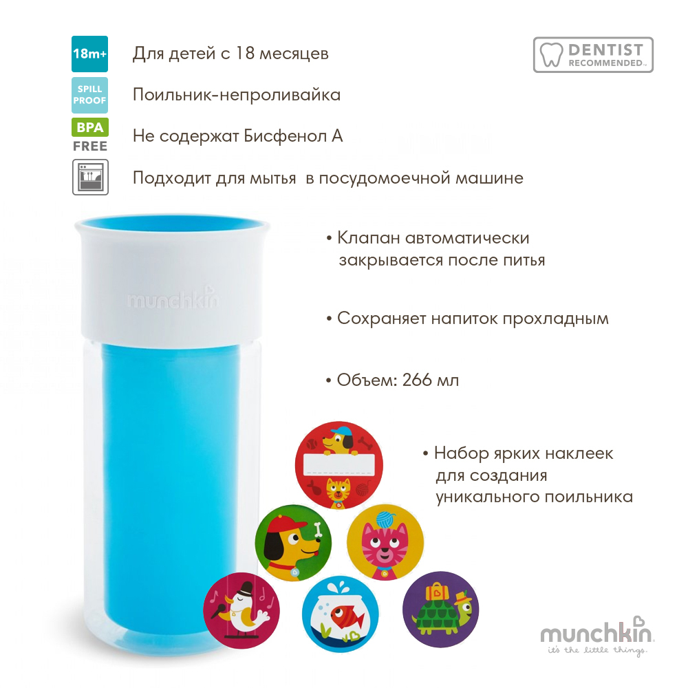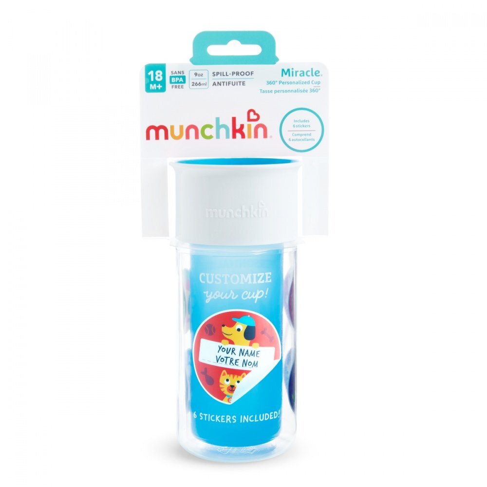 Munchkin поильник-непроливайка MIRACLE 360 с наклейками 266 мл. с 18 мес., голубой