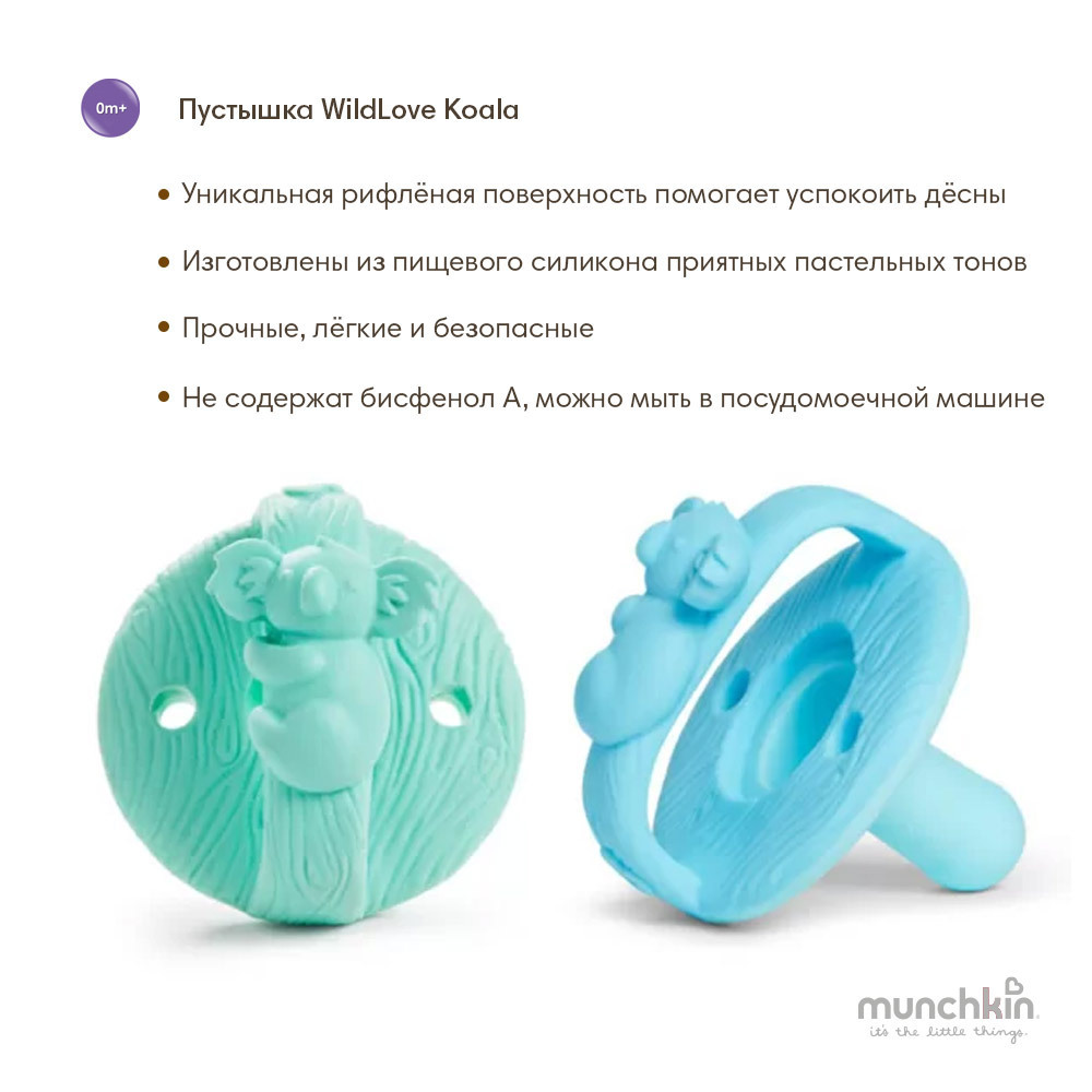 Munchkin пустышка-прорезыватель WildLove Koala, голубая/мятная 2 шт.