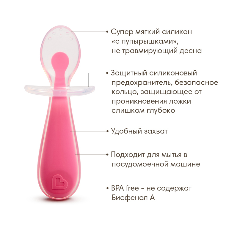 Munchkin ложки силиконовые обучающие с ограничителем Gentle Scoop Розовый 2 шт. от 6 месяцев