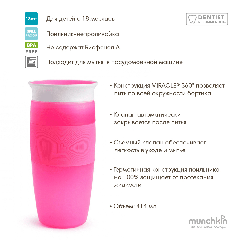 Munchkin поильник непроливайка MIRACLE 360 414 мл.розовый 12+