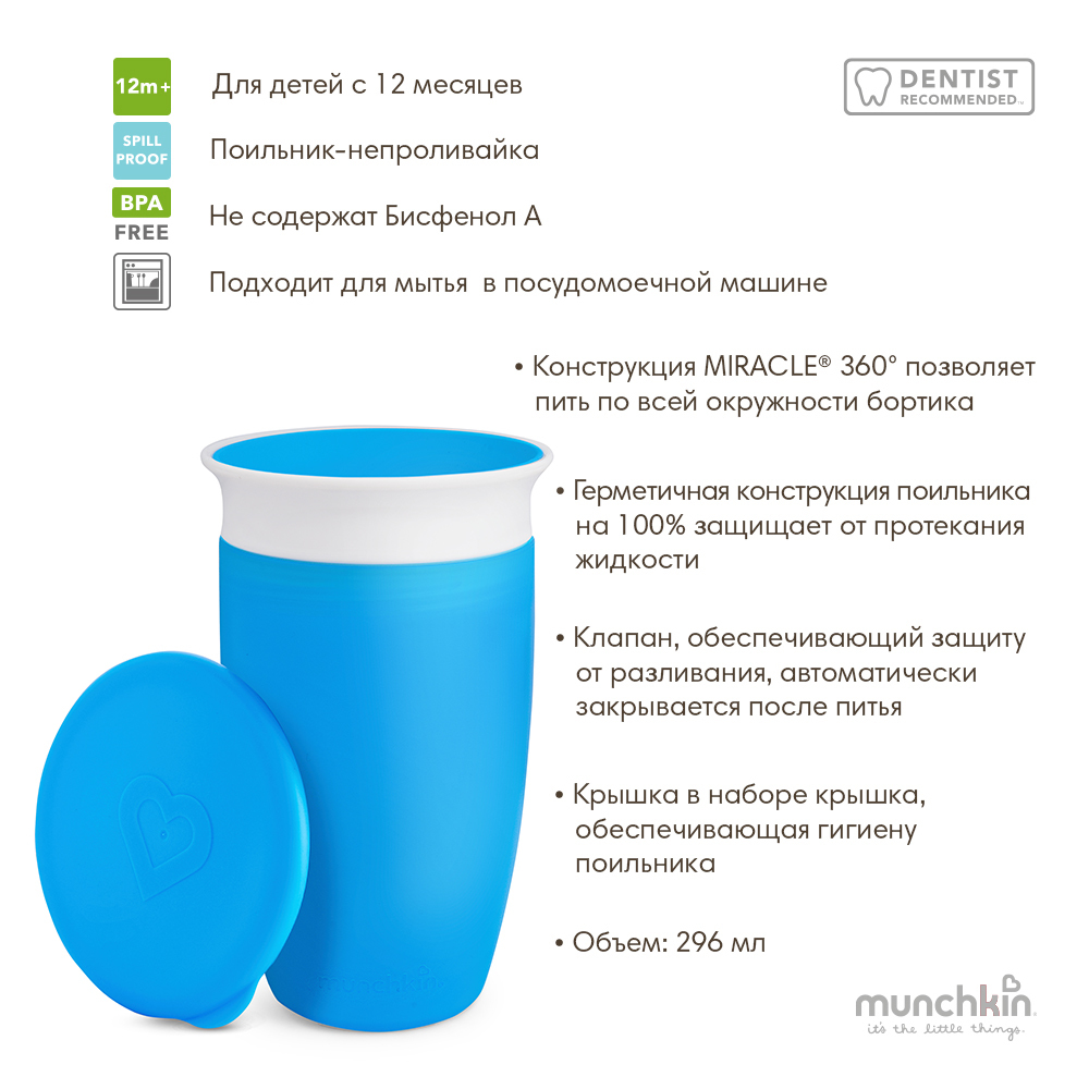 Munchkin поильник MIRACLE 360 Colour Changing синий 266 мл.12+