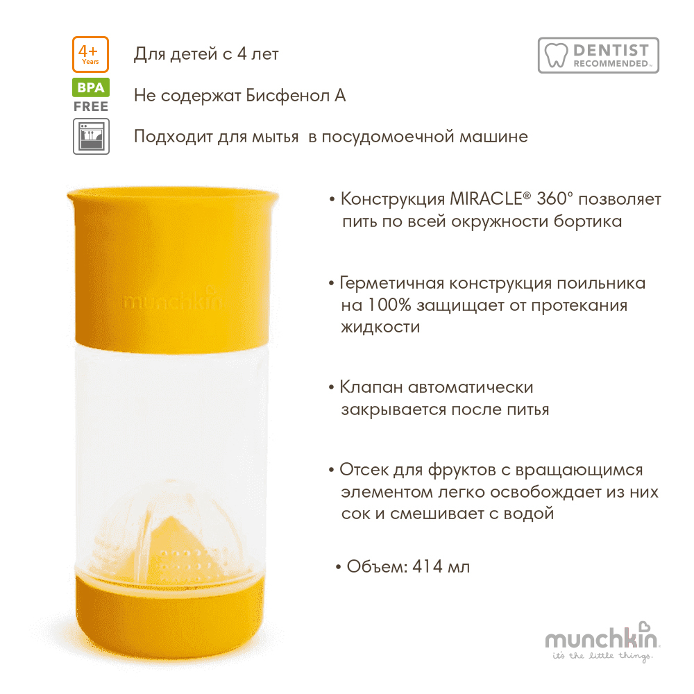 Munchkin поильник MIRACLE 360 для фруктовой воды с инфузером 414мл. Желтый от 4 лет