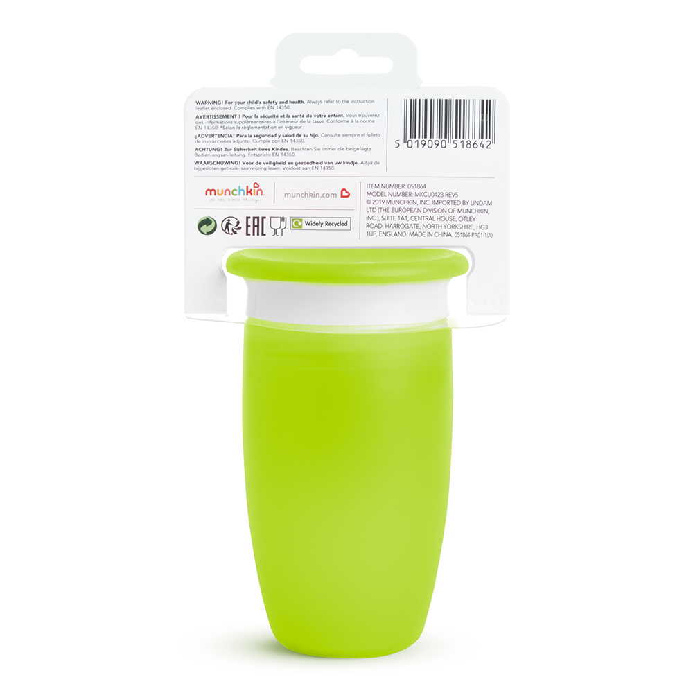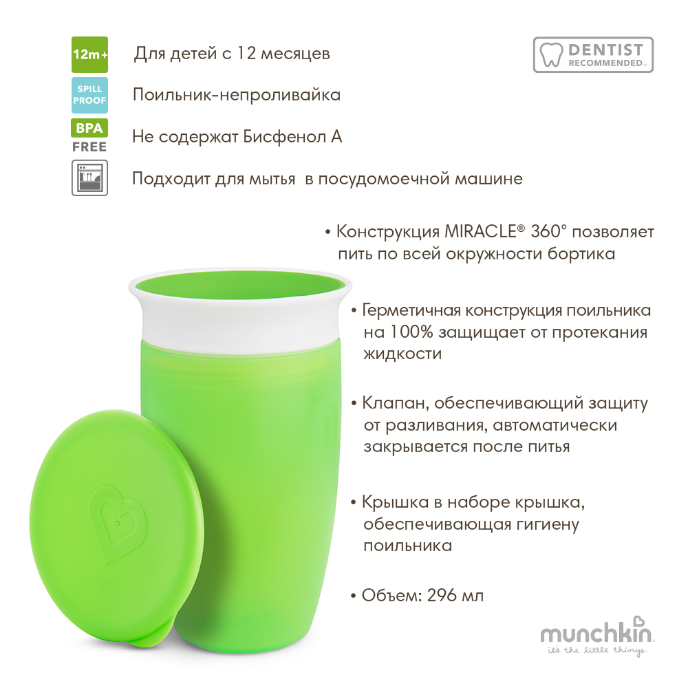 Munchkin поильник с крышкой MIRACLE 360 непроливайка Зеленый 296 мл. 12+