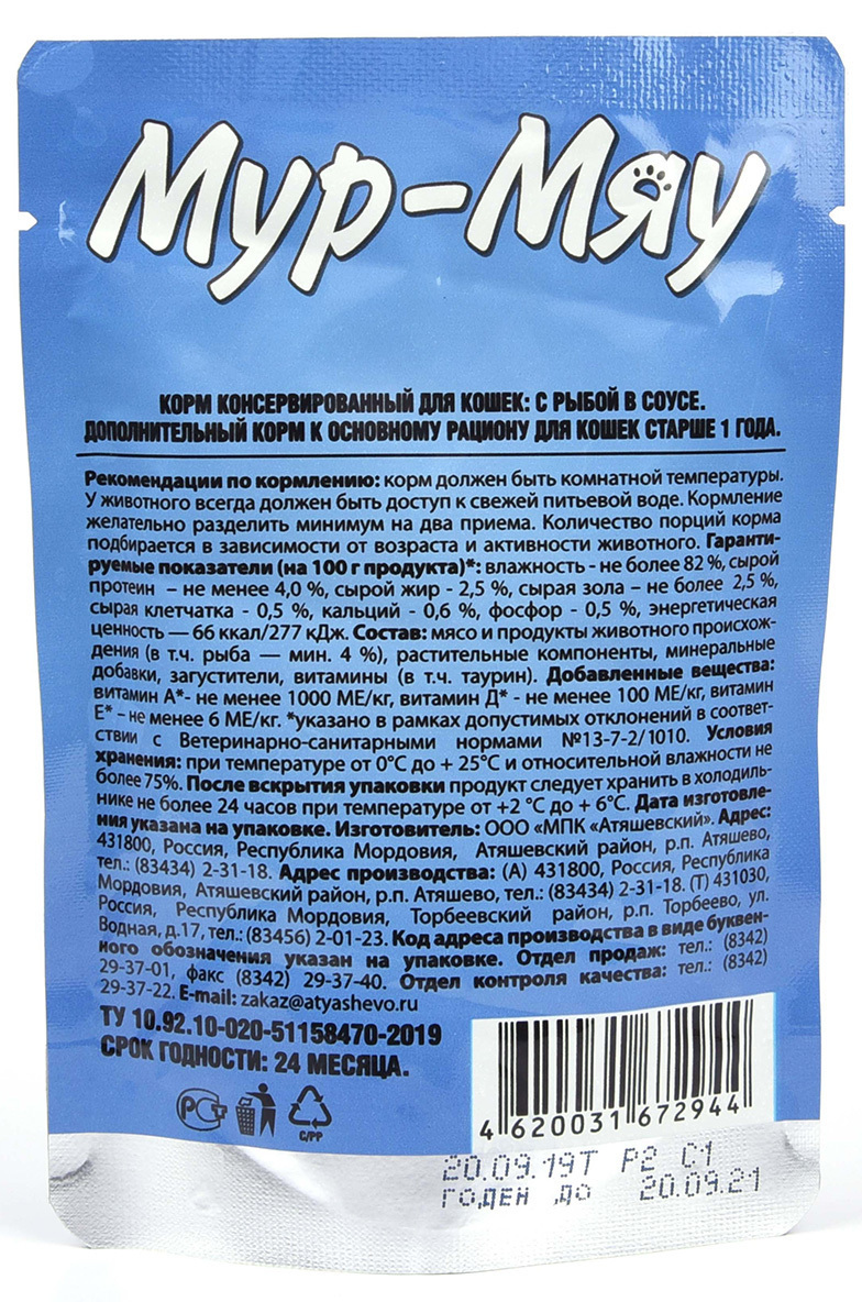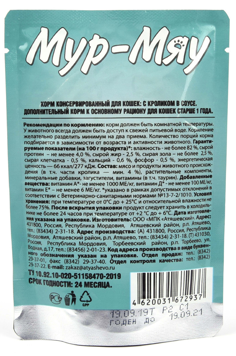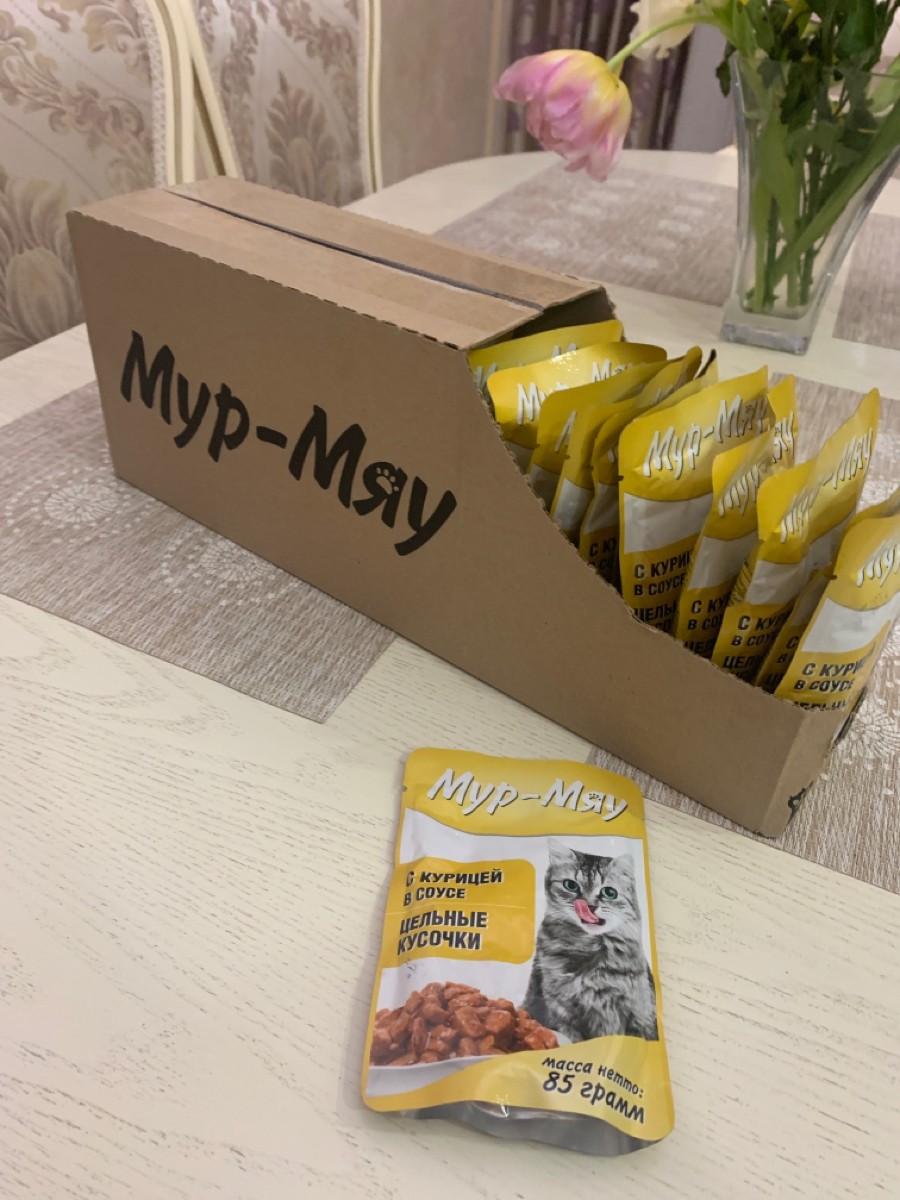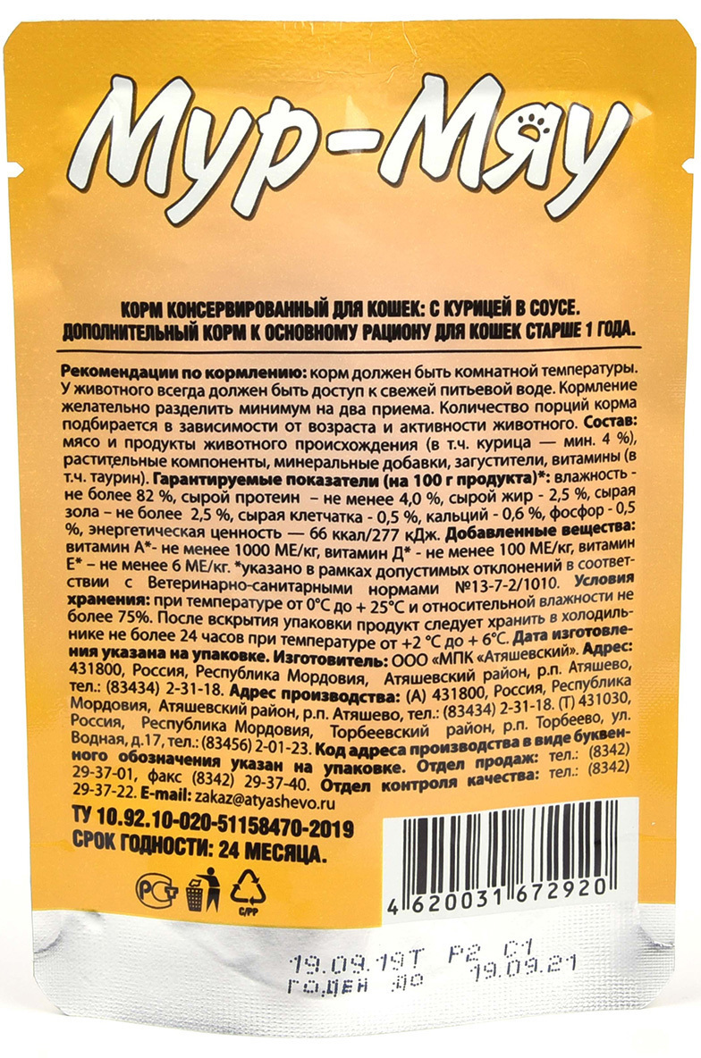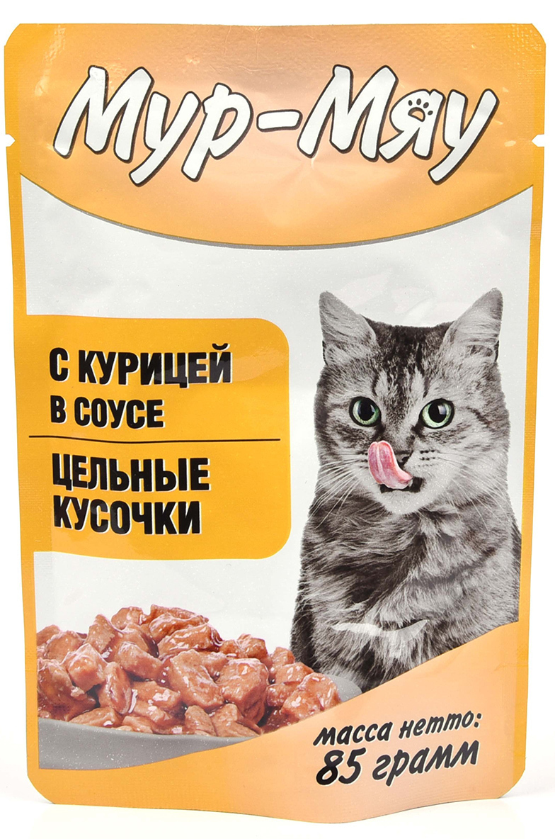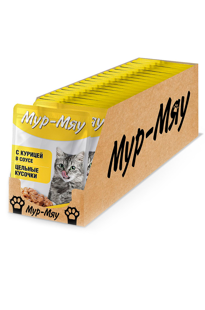 Корм для кошек Мур-Мяу с Курицей в соусе, 24 шт*85 г