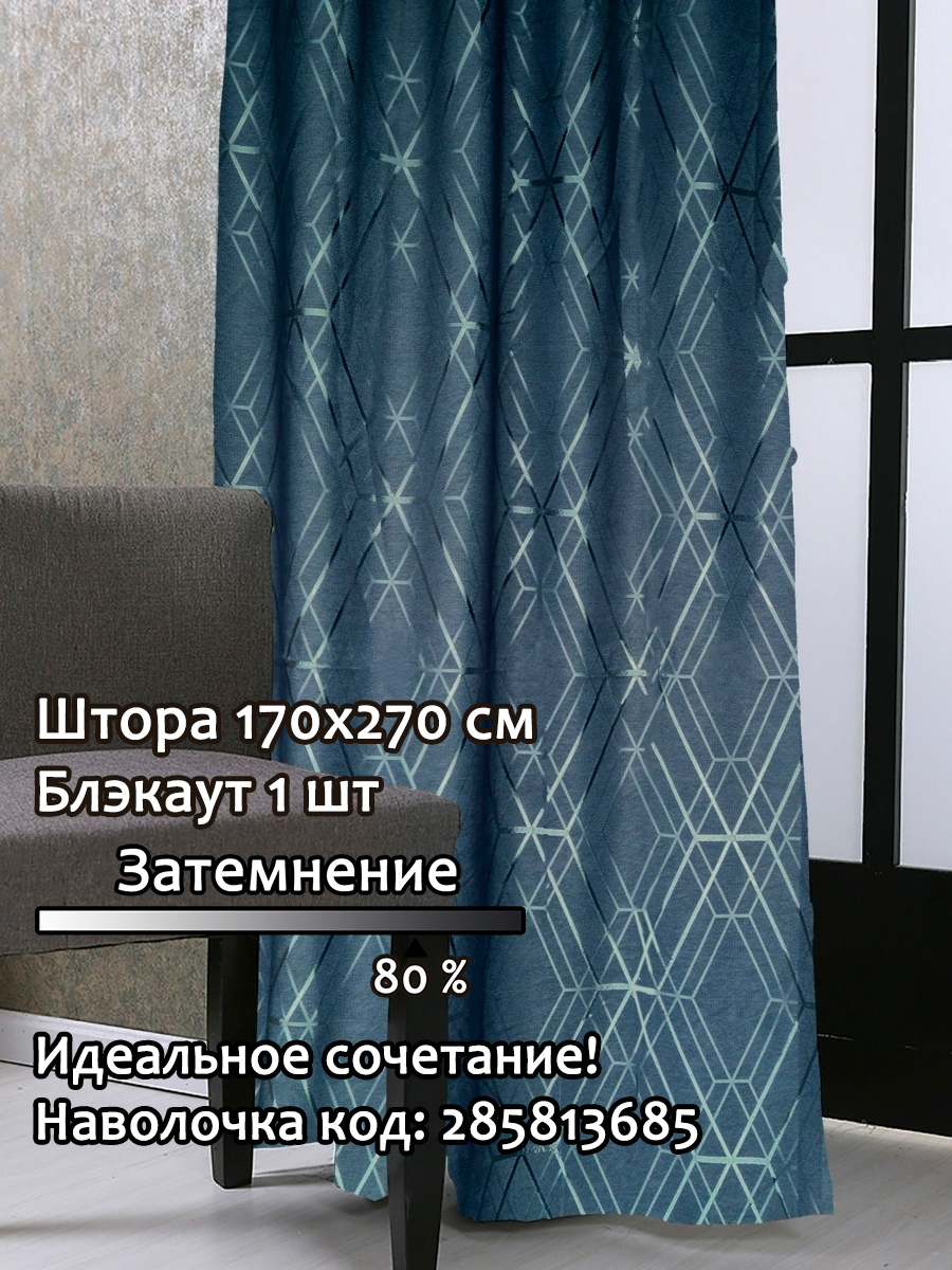 Штора Музыка декора Блэкаут Матрикс 270х170см, серо-синий