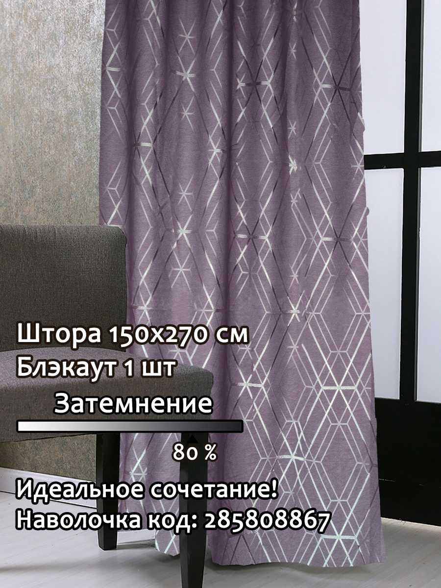 Штора Музыка декора Бархат MODERN 270х150см, сиреневый
