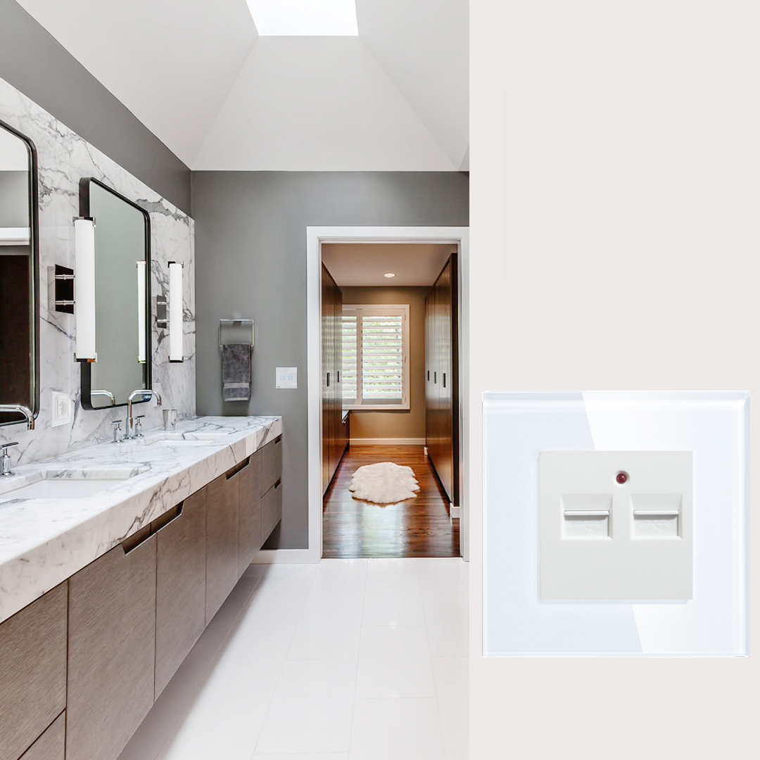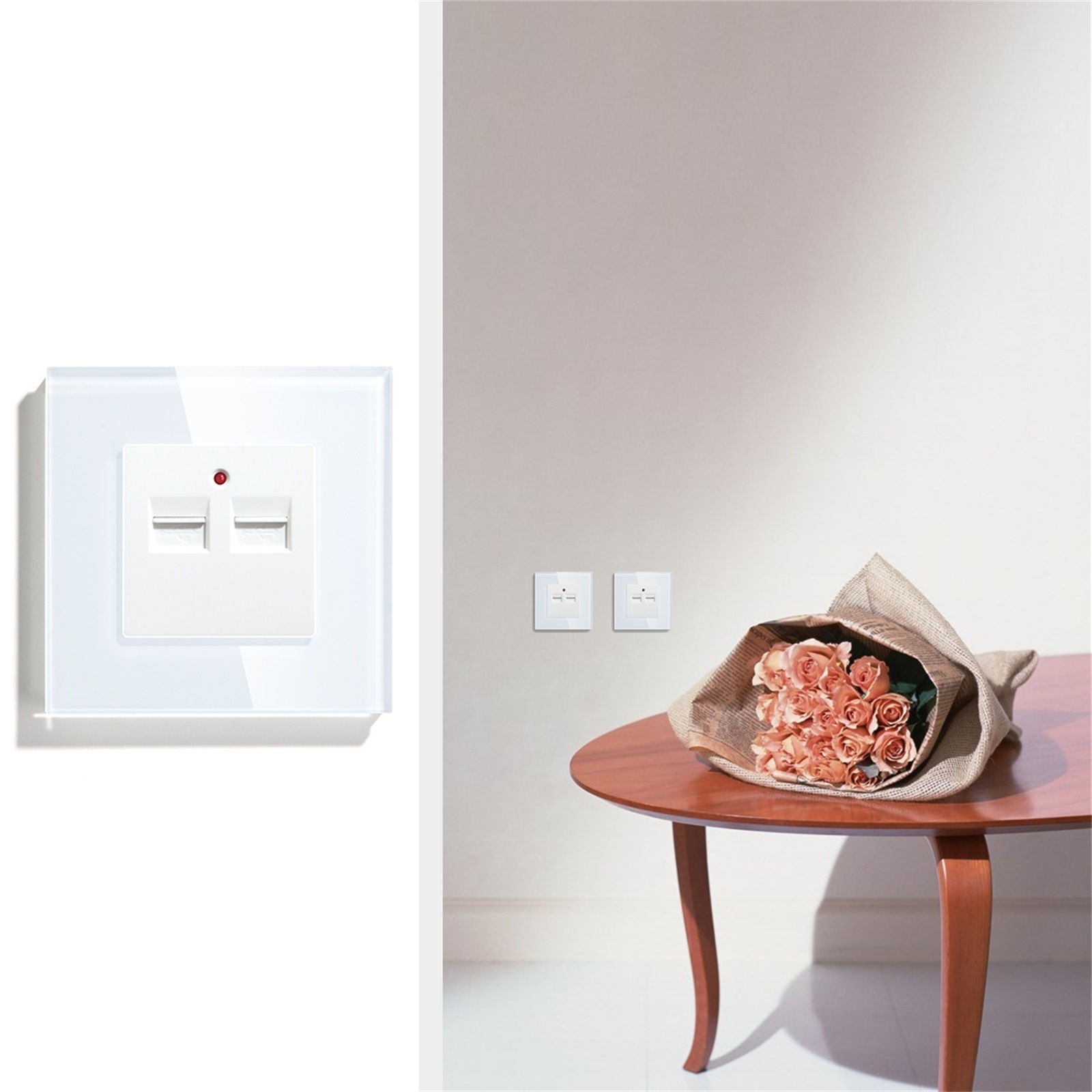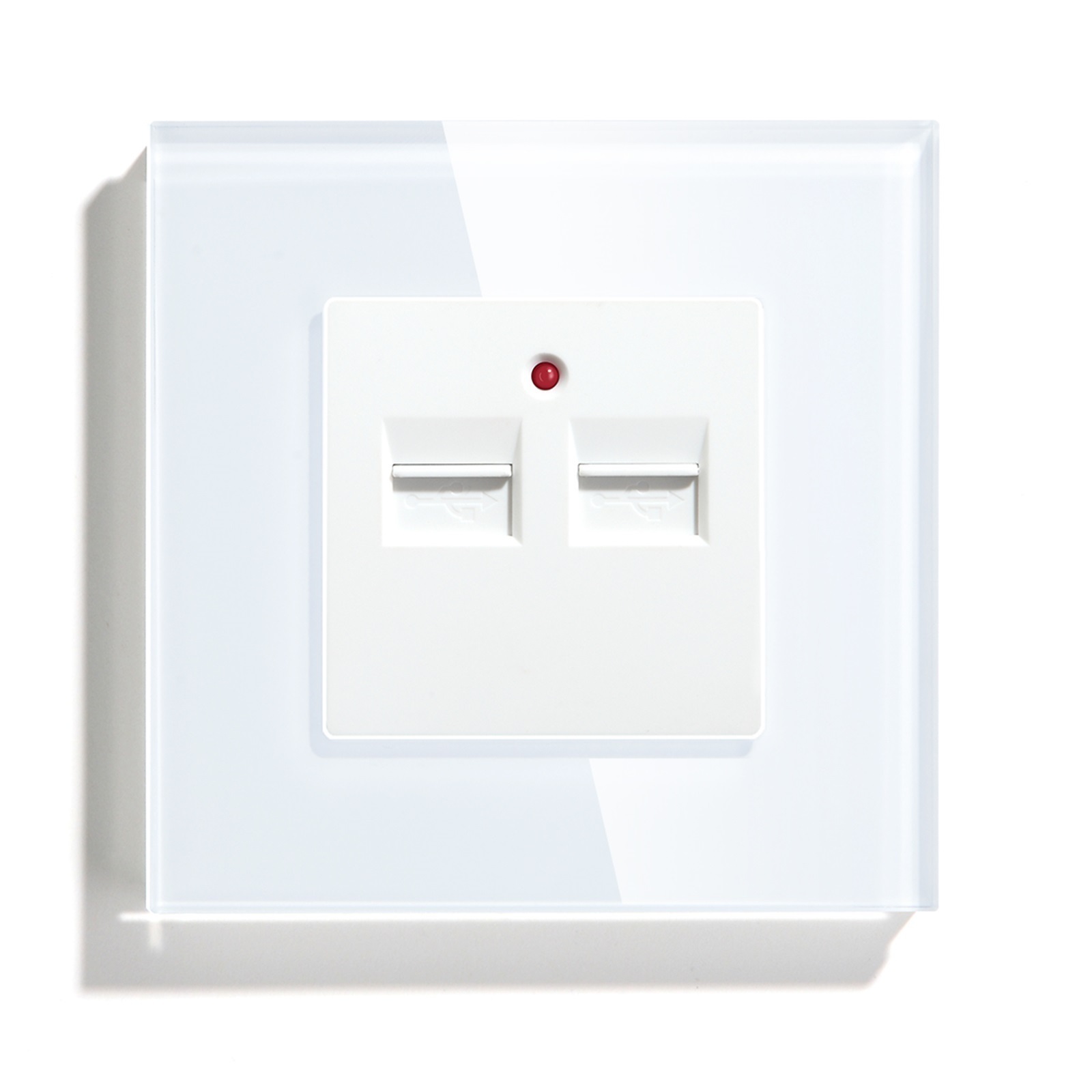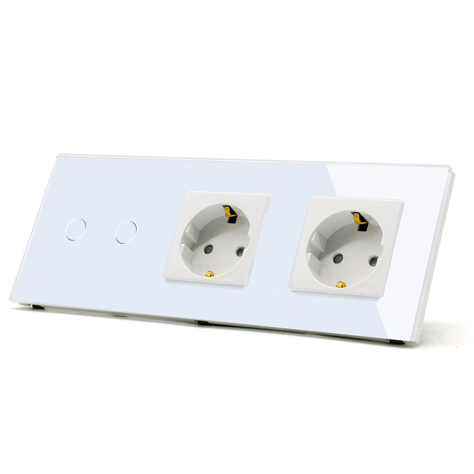 Розетка двойная евро стандарт со шторками 16А 250V 2 поста рамка закаленное стекло MVAVA Белая