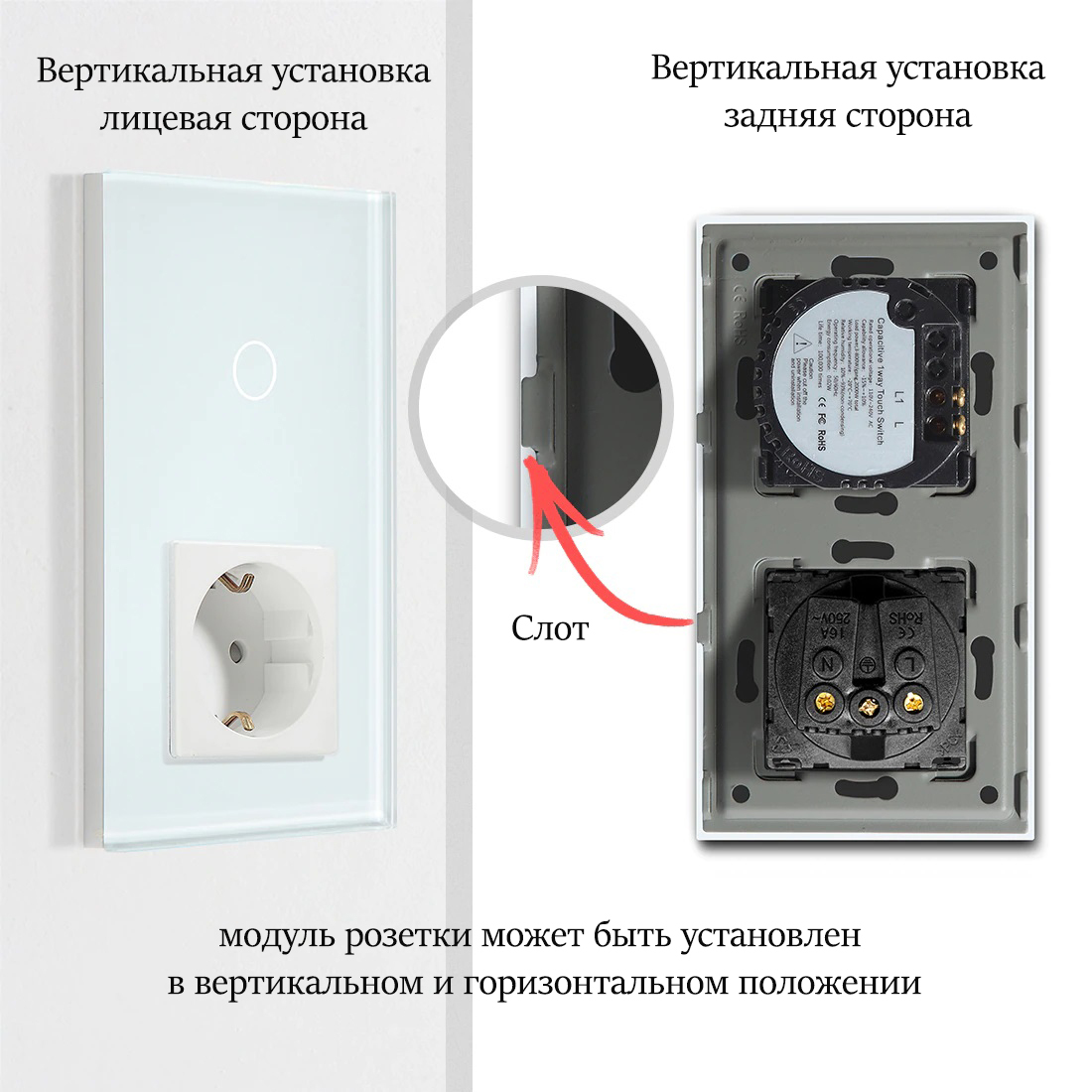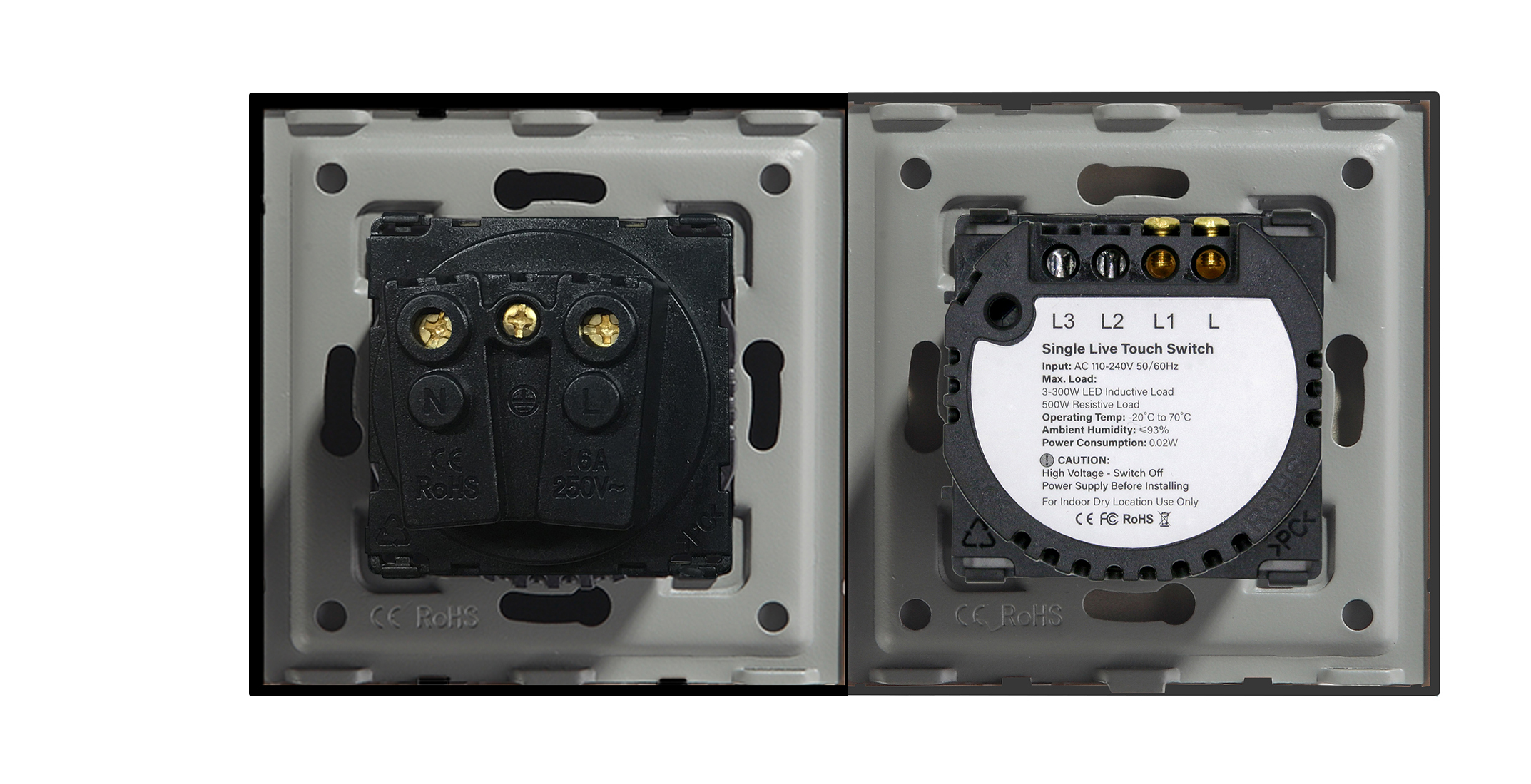 Сенсорный выключатель Touch Switch 3 клавиши, 2 поста (2+1) панель стекло Черный