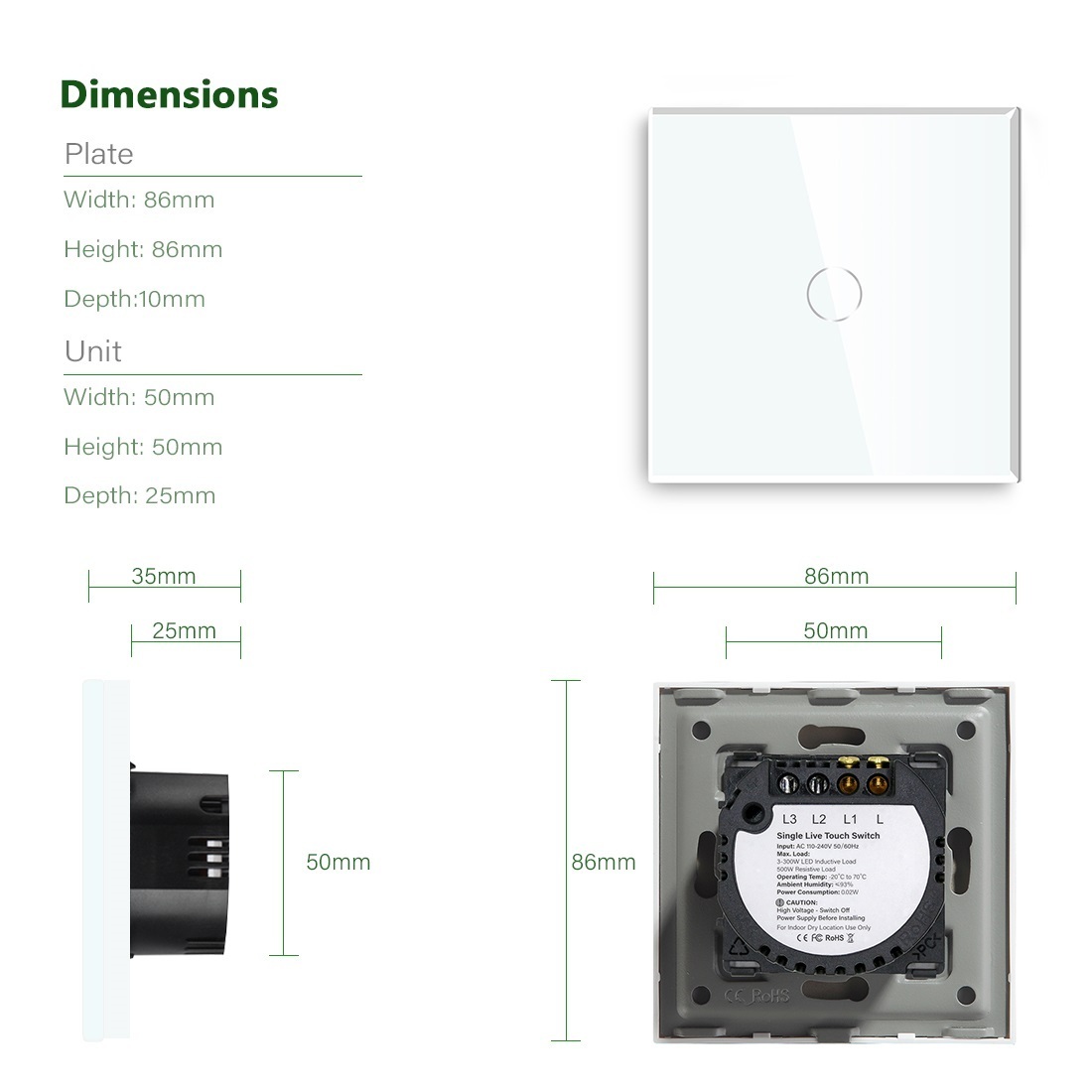Сенсорный выключатель Touch Switch 1 клавиша, панель стекло Белый