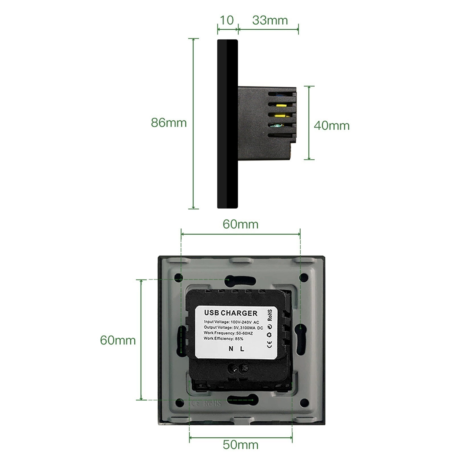 Розетка Usb для зарядки двойная 3.1 А MVAVA Черная