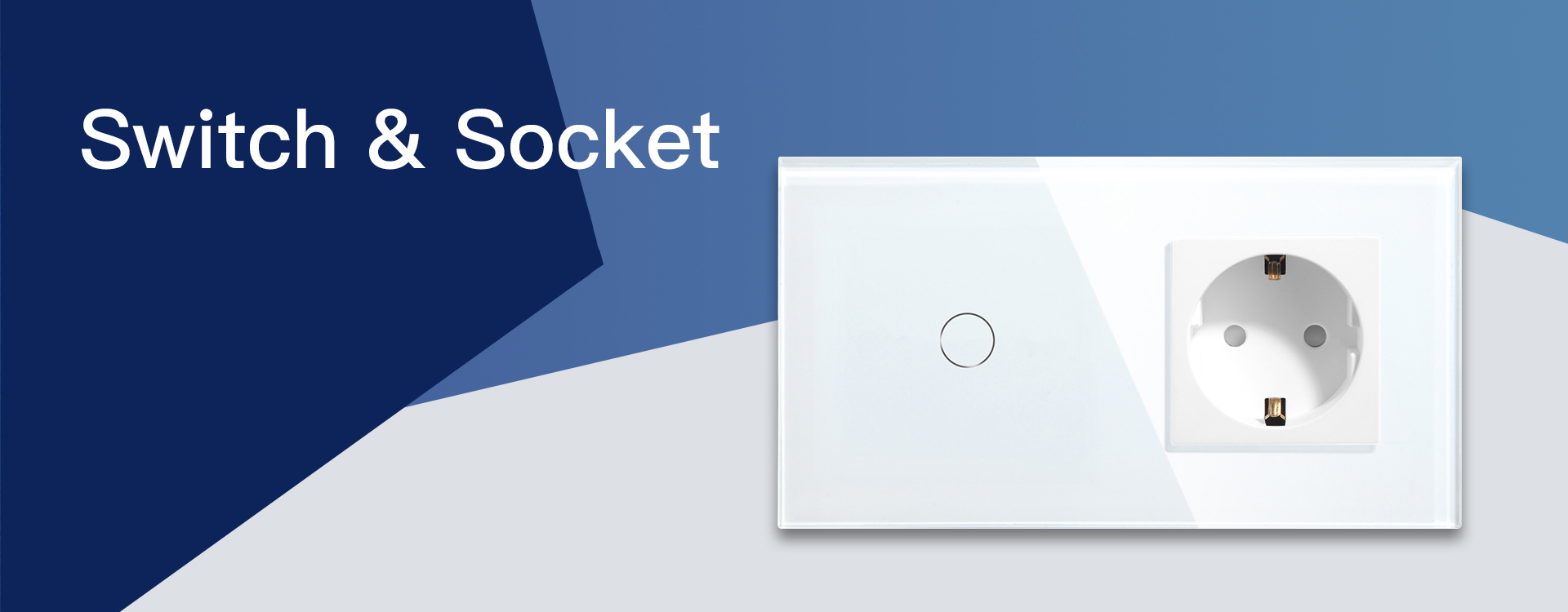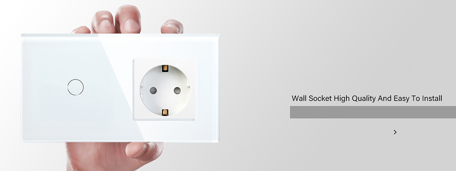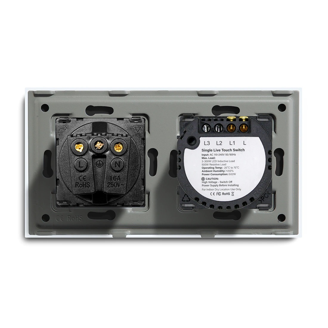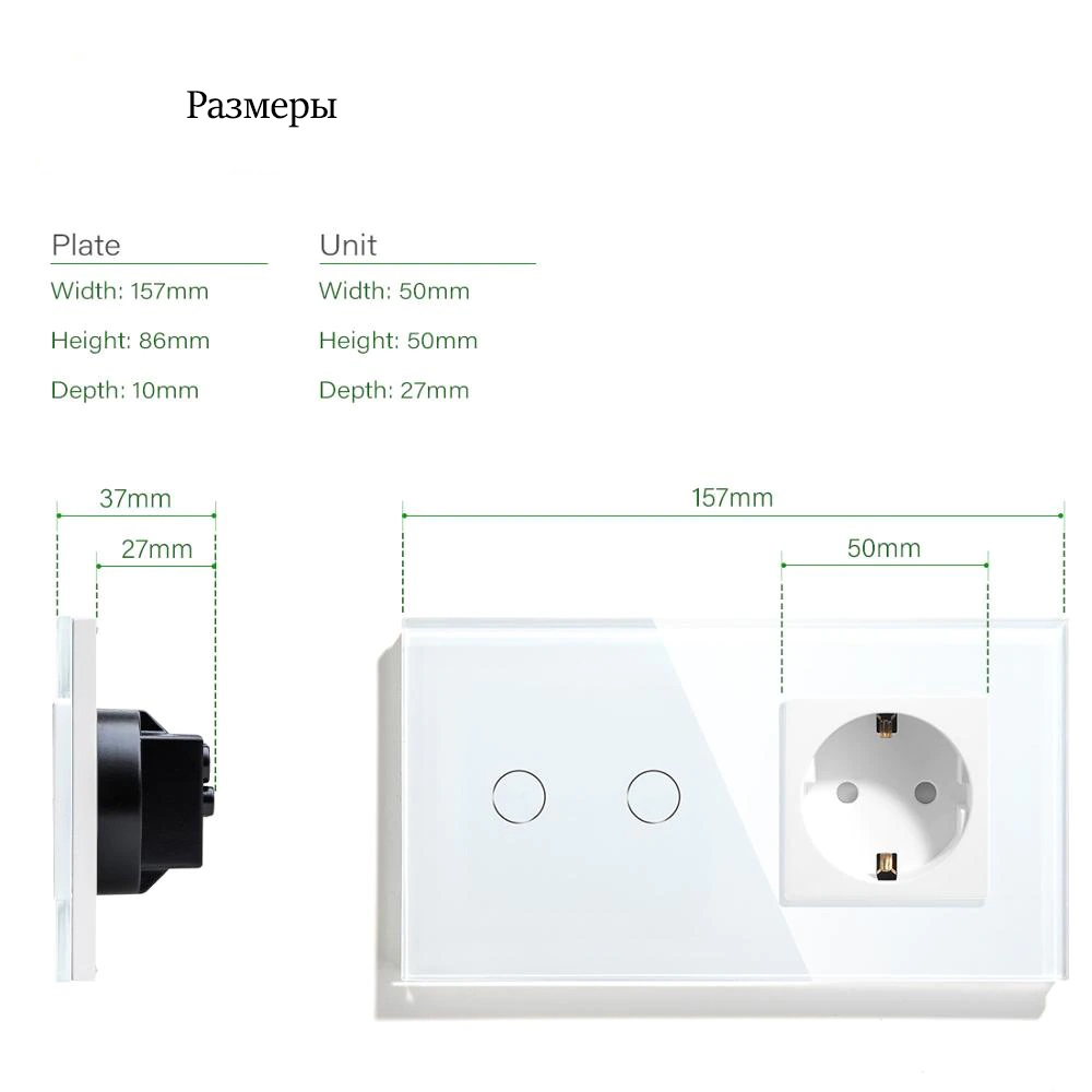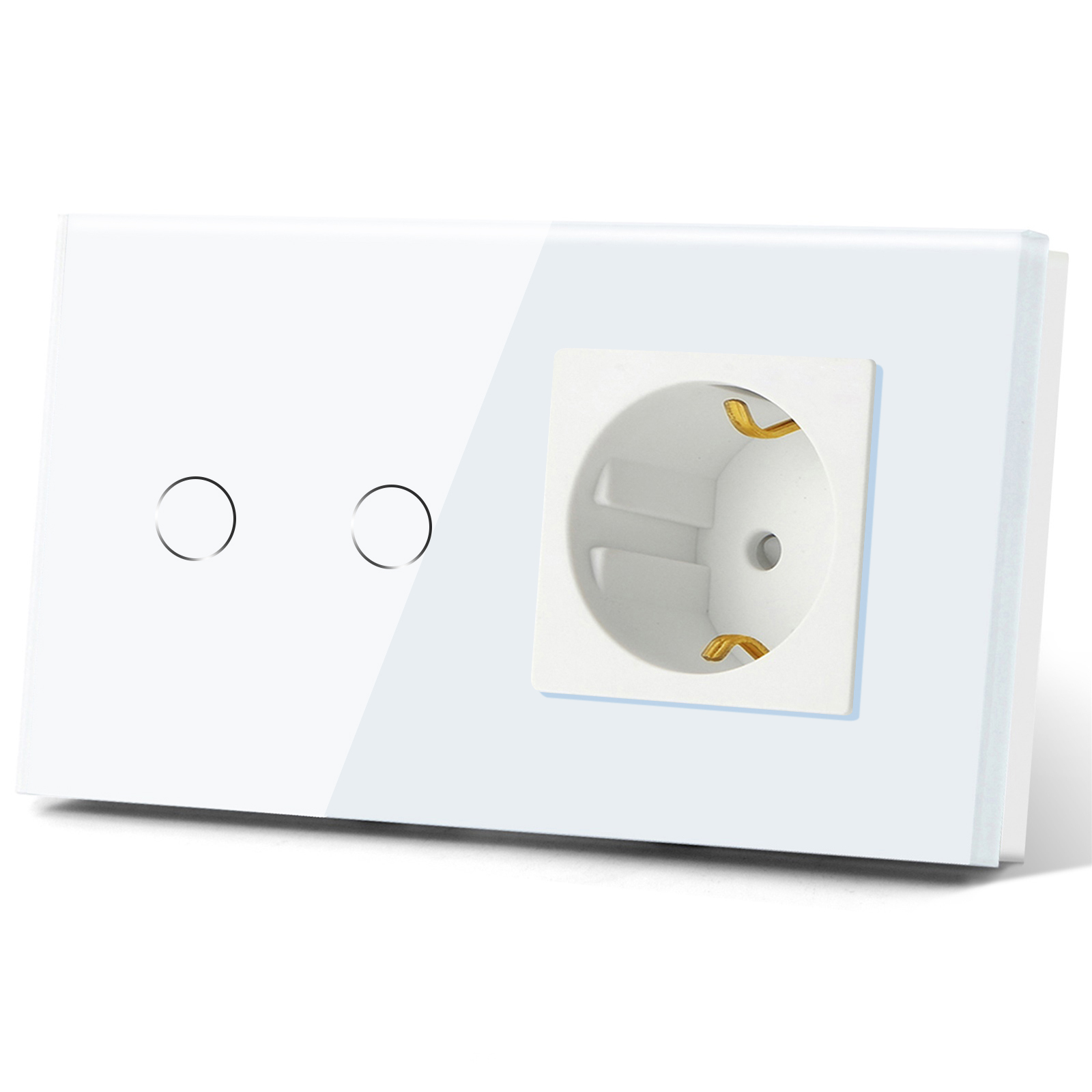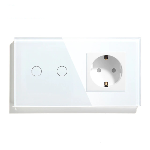 Сенсорный выключатель с розеткой Touch Switch 2 клавиши 1 розетка, 2 поста (2+1) панель стекло Белый