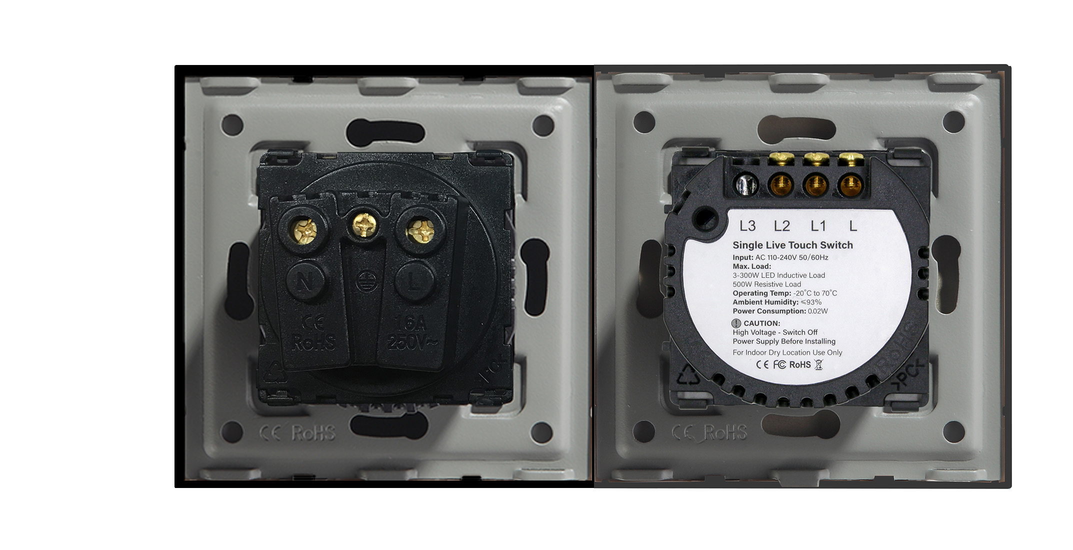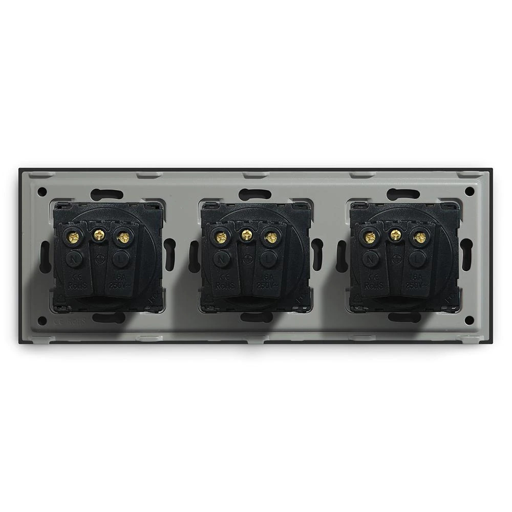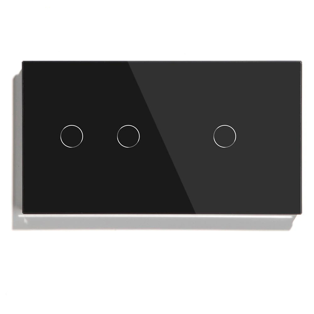 Сенсорный выключатель Touch Switch 3 клавиши, 2 поста (1+2) панель стекло Черный