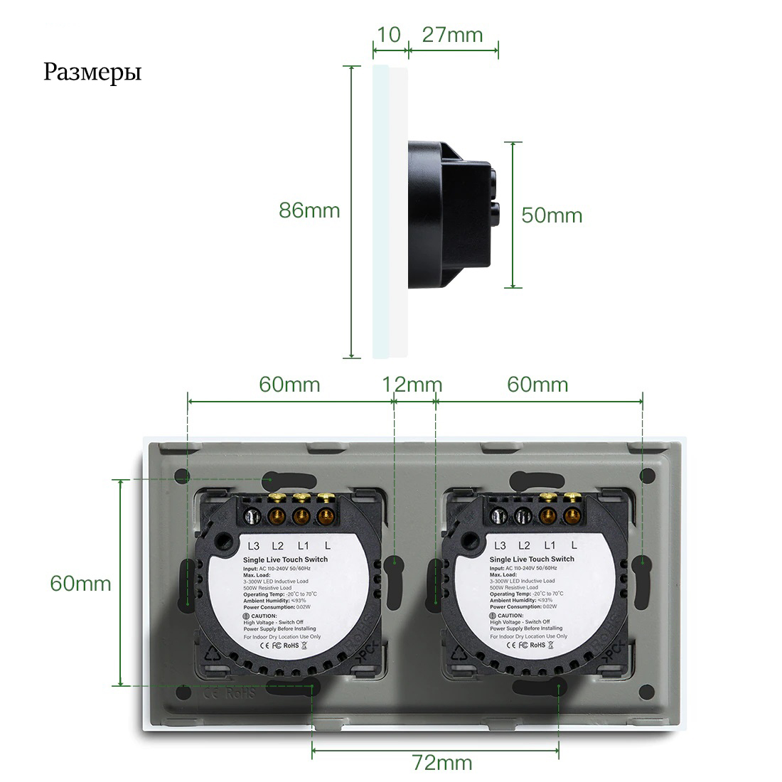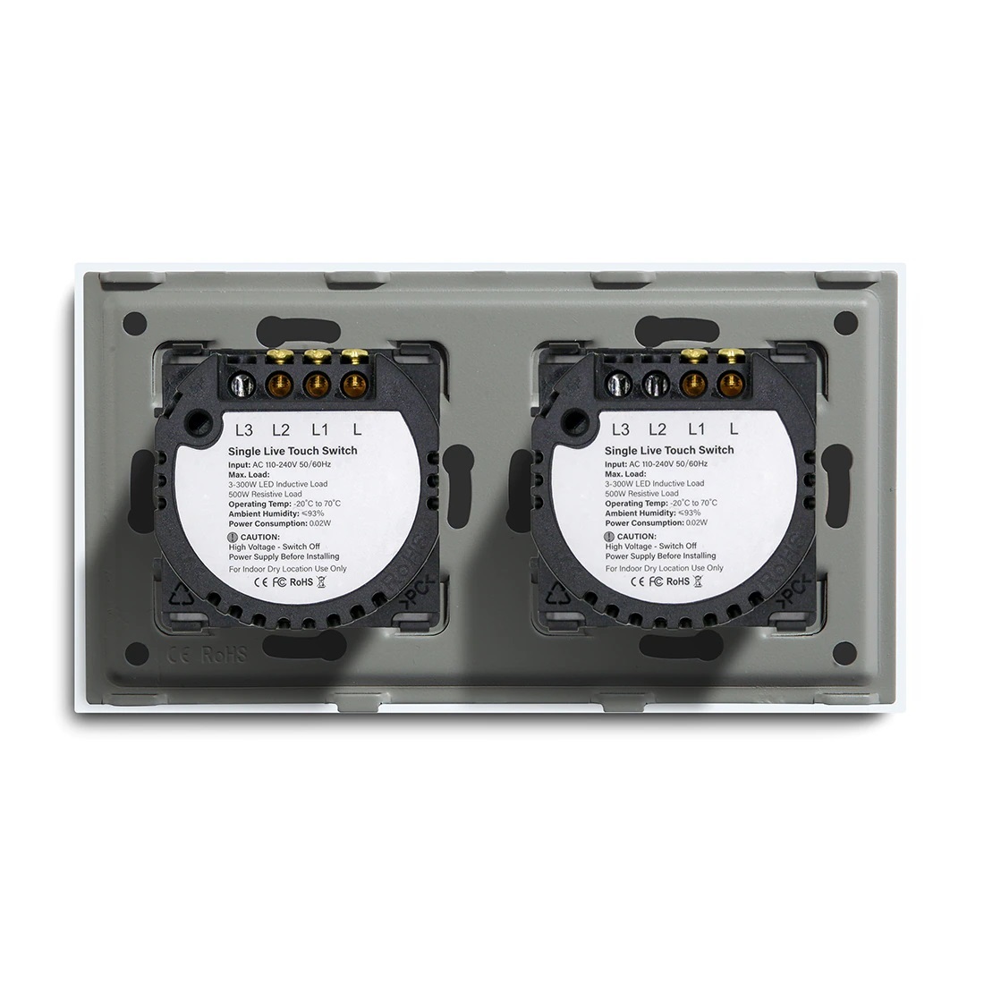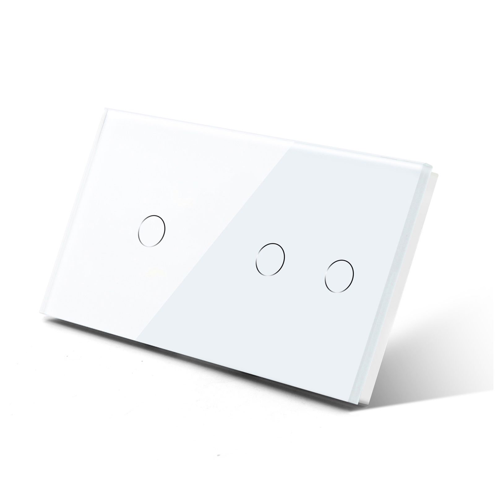 Сенсорный выключатель Touch Switch 3 клавиши, 2 поста (1+2) панель стекло Белый