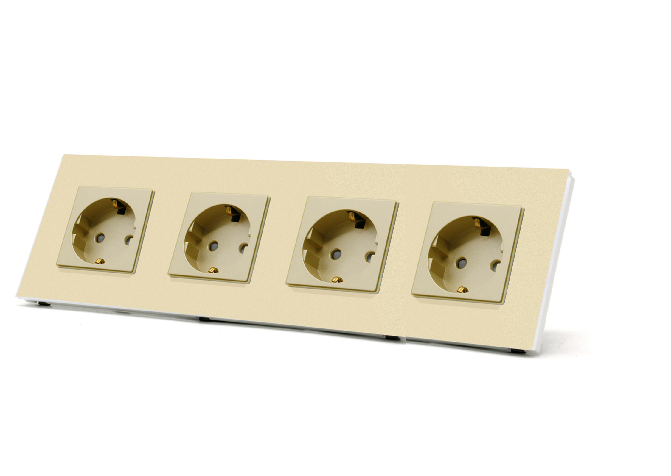 Розетка Smart Home 4-х постовая 16А со шторками рамка закаленное стекло Золотая