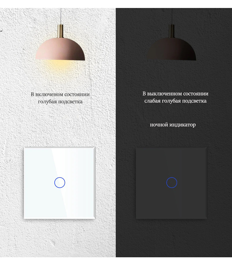 Диммируемый выключатель, светорегулятор, панель закаленное стекло, Белый