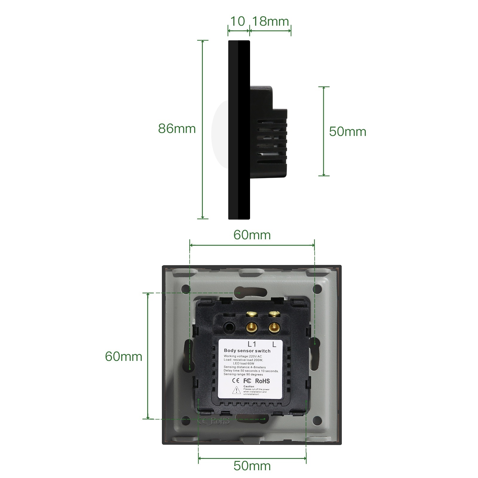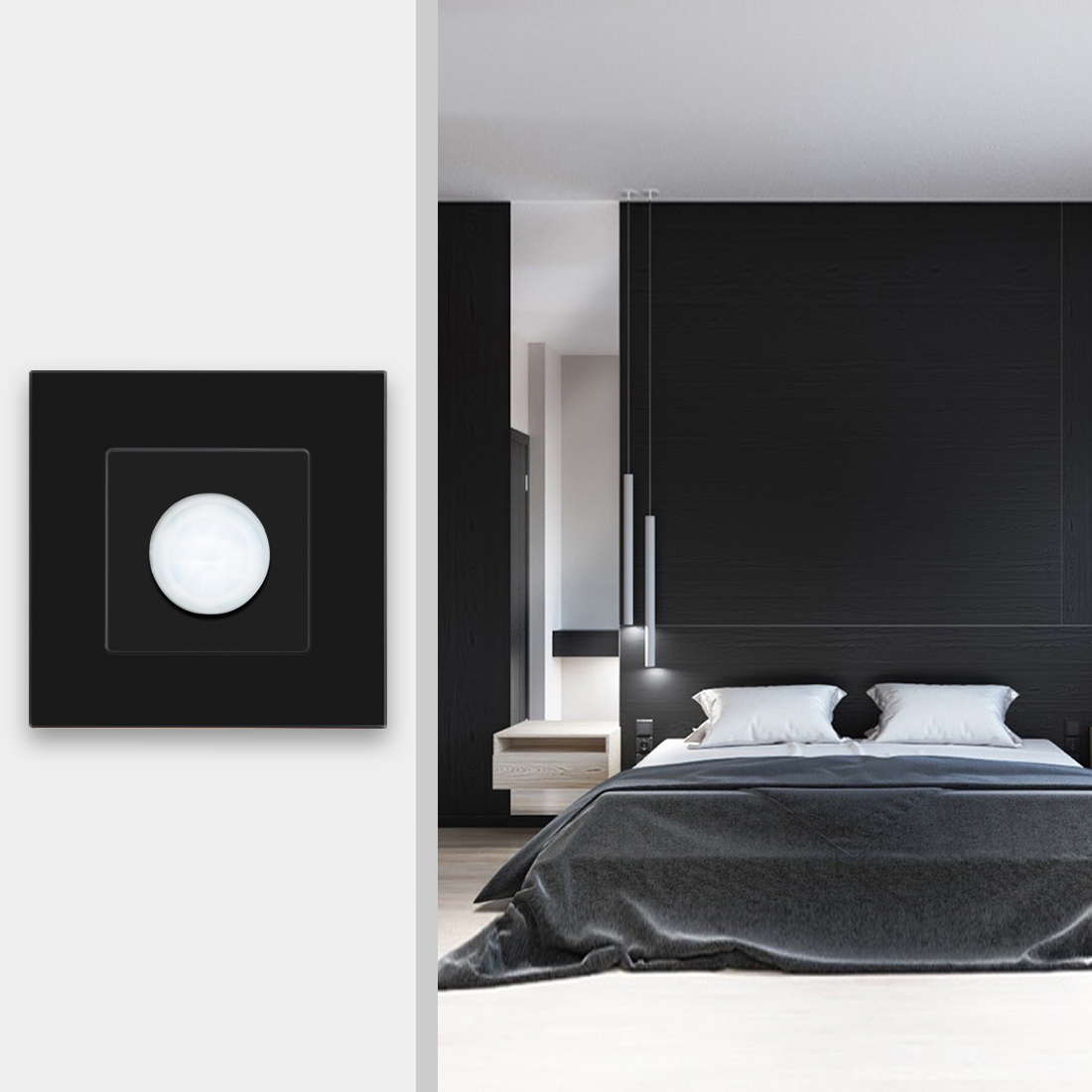 Датчик движения инфракрасный PIR, для включения света, встраиваемый, радиус 8 м Черный