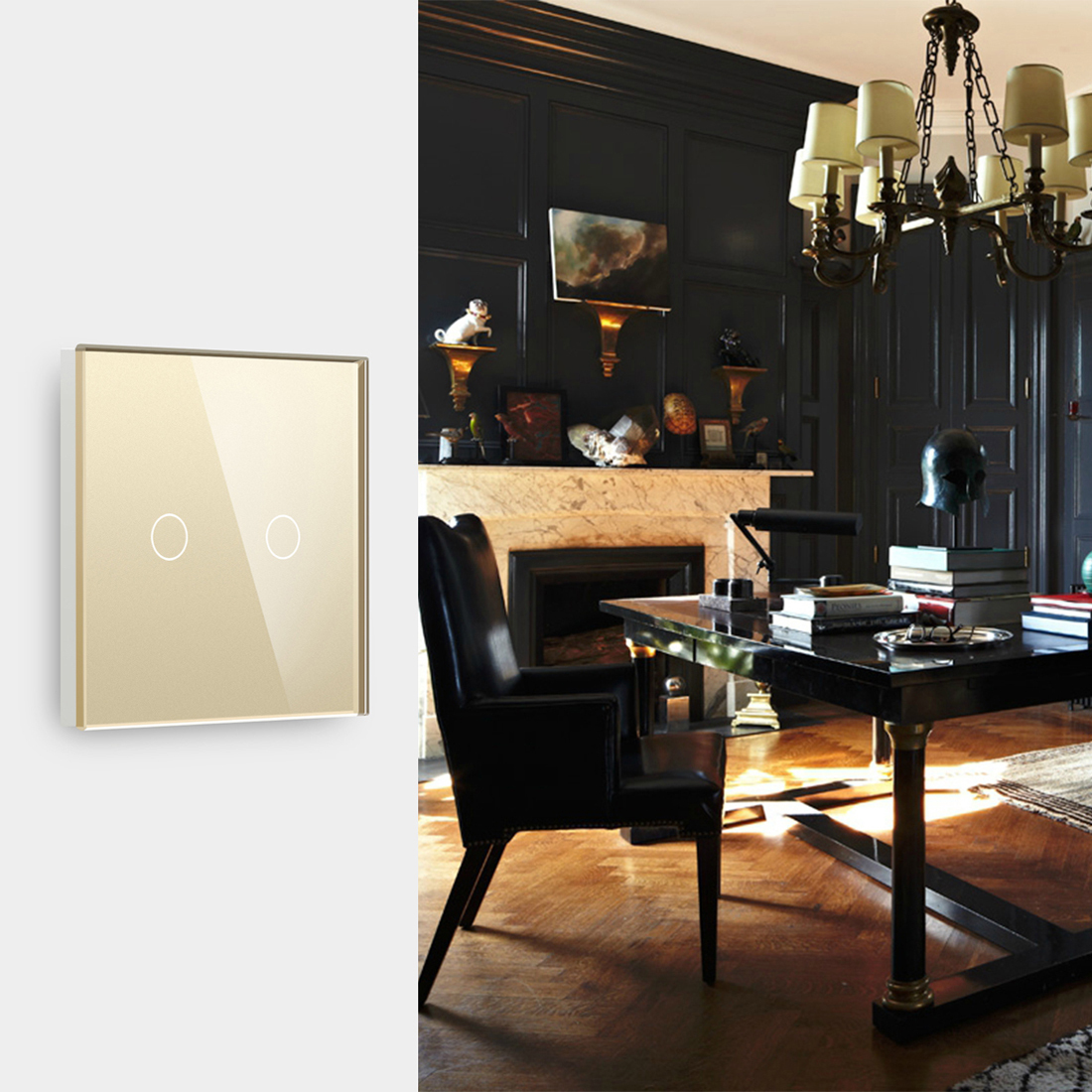 Сенсорный выключатель Touch Switch 2 клавиши, панель стекло Золотой