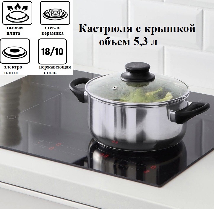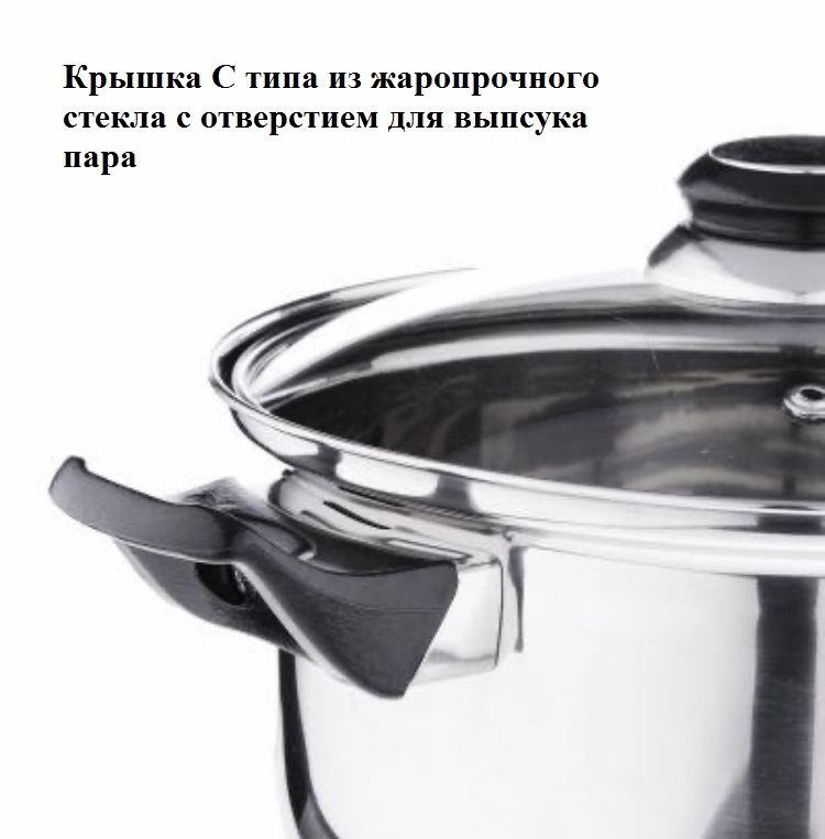 Кастрюля из нержавеющей стали в комплекте с крышкой из прозрачного стекла с паровыпуском