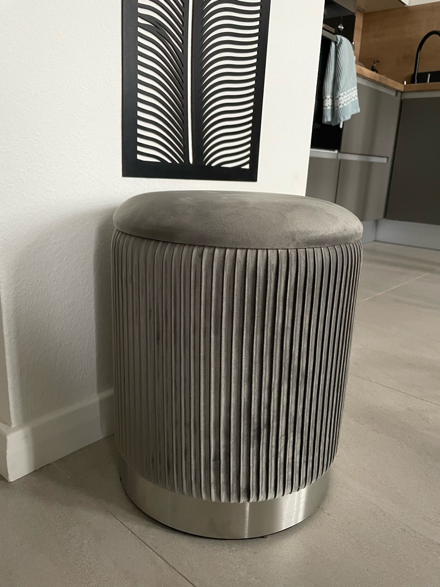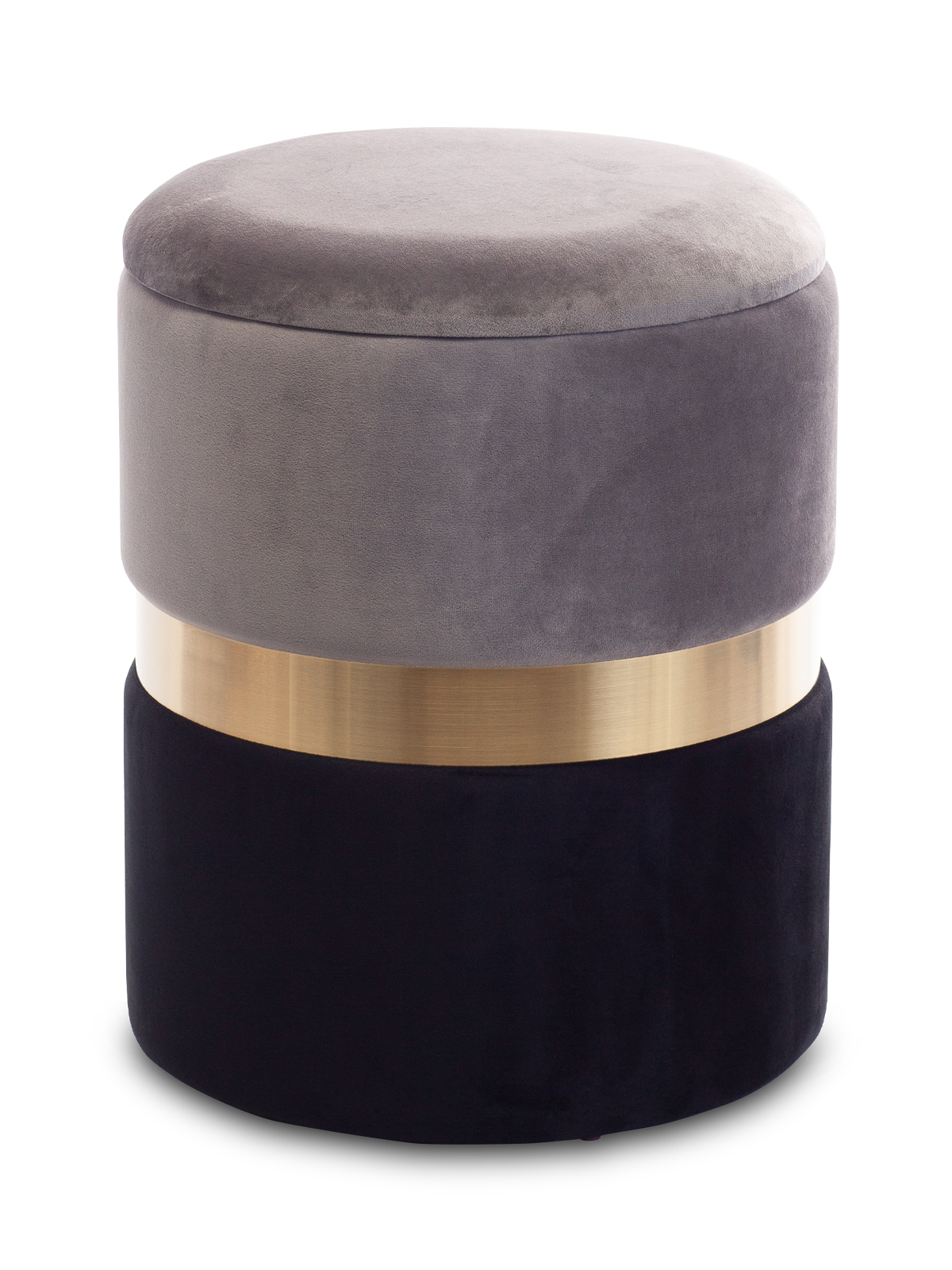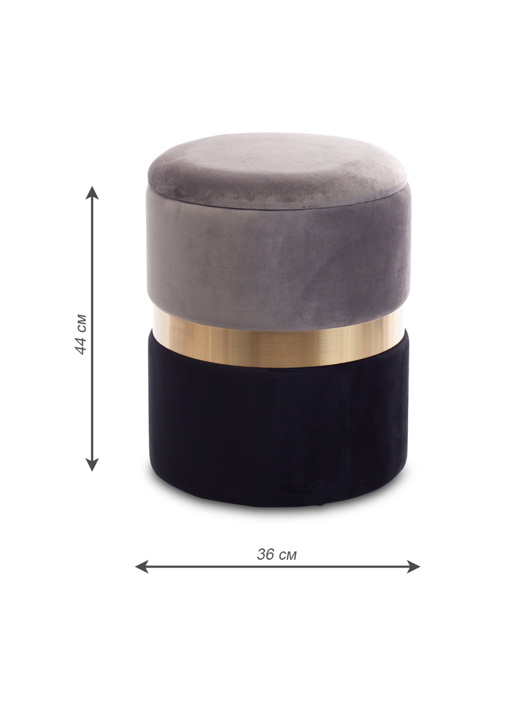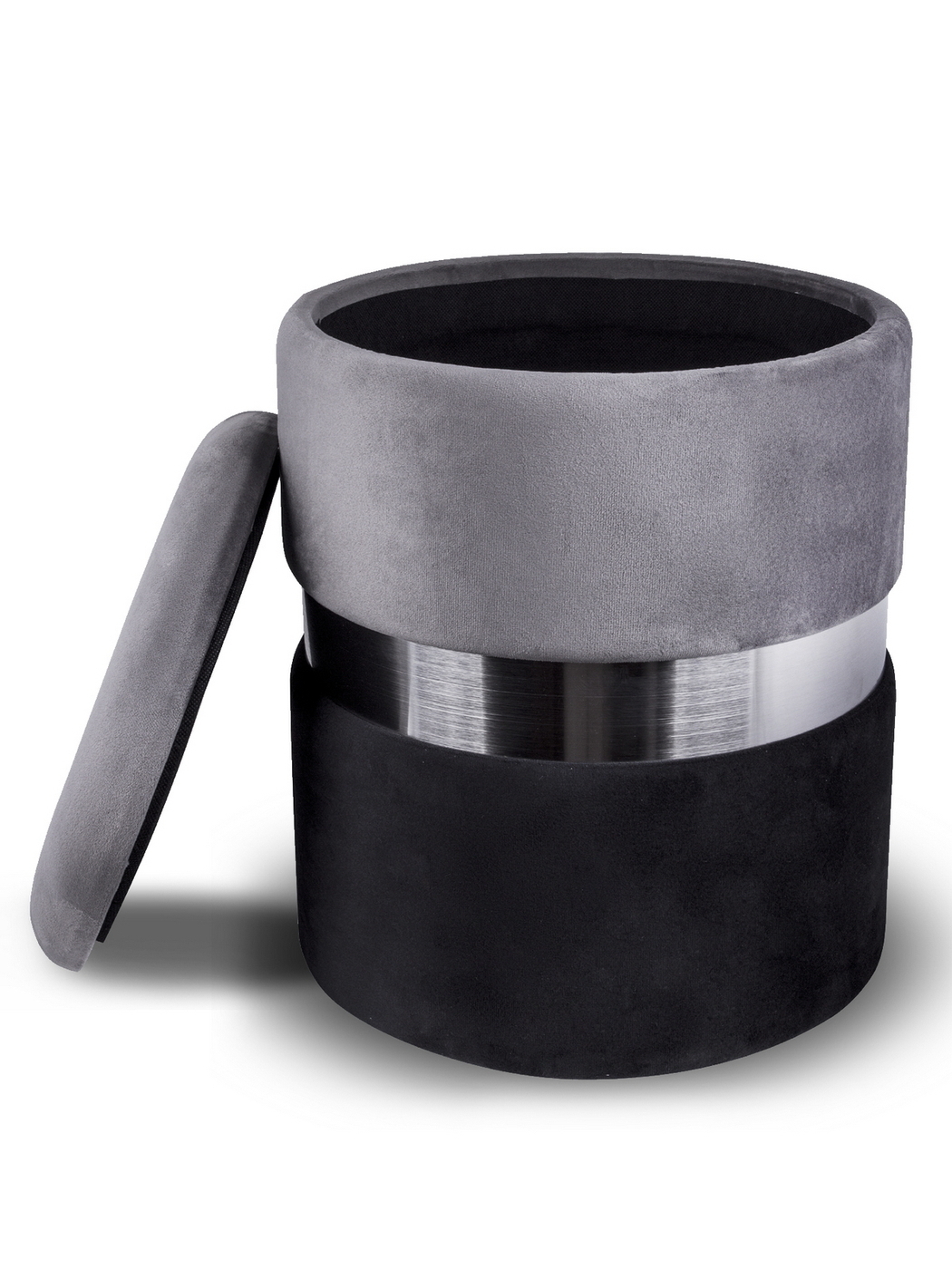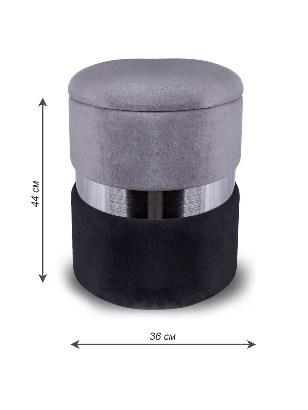 Пуф My Interno XL черны-серый, хром в прихожую, в гостиную, Ткань, 36х36х44 см