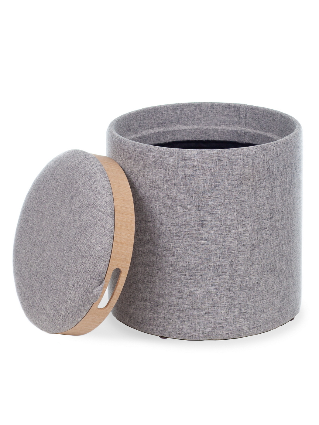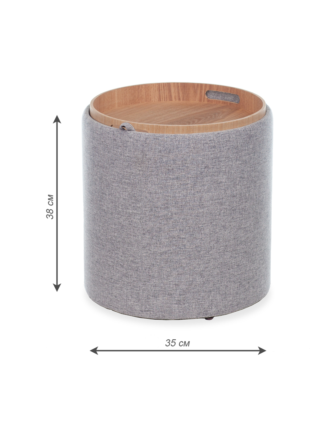 Пуф My Interno Scandi small, серый, с деревянной крышкой, в прихожую, в гостиную, Ткань, 35х35х38 см
