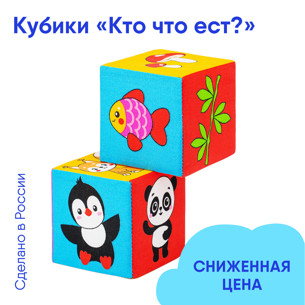 Игрушка набор мягких развивающих кубиков Мякиши Кто Что Ест первые кубики для малышей