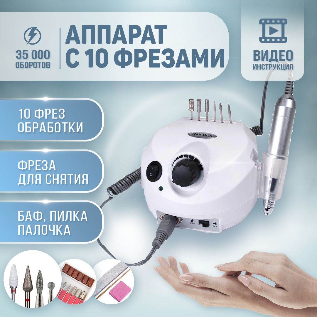 MyBeauty Аппарат для маникюра и педикюра машинка для маникюра, фрезер с набором фрез 35 000 об 45w