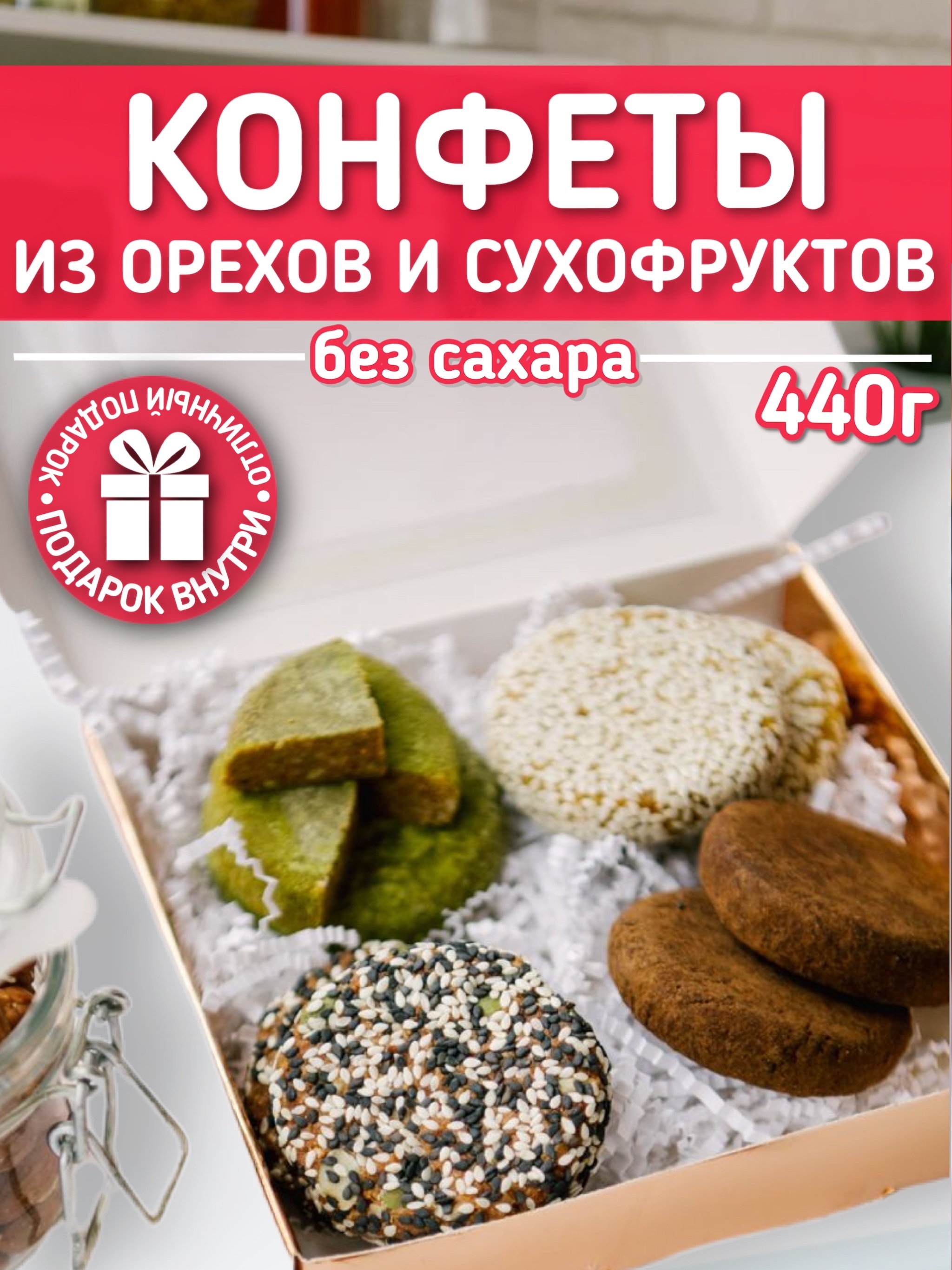 КОНФЕТЫ ИЗ ОРЕХОВ И СУХОФРУКТОВ БЕЗ САХАРА 440 ГР
