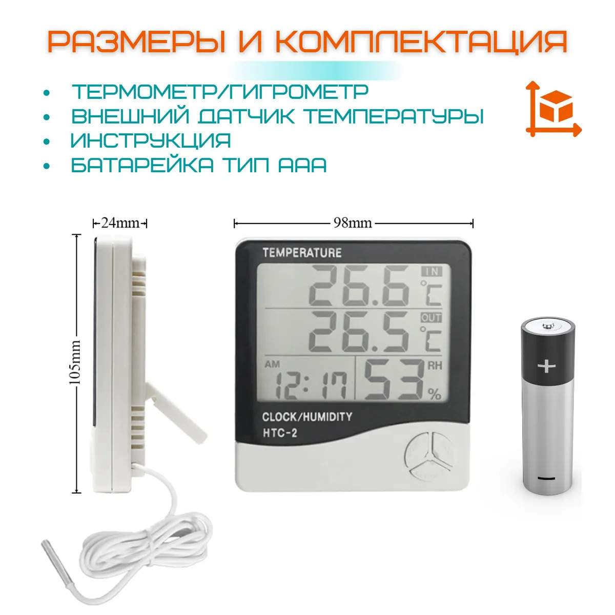 Метеостанция с выносным датчиком измерением температуры и влажности воздуха HTC-2