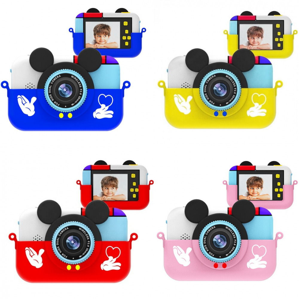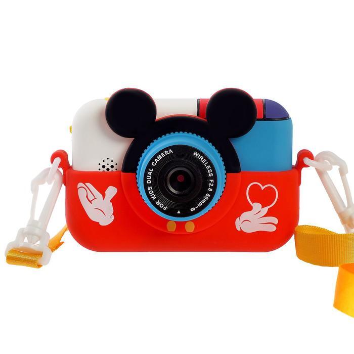 Фотоаппарат детский Микки Маус красный с селфи-камерой, играми и рамками +Подарок +Чехол защитный