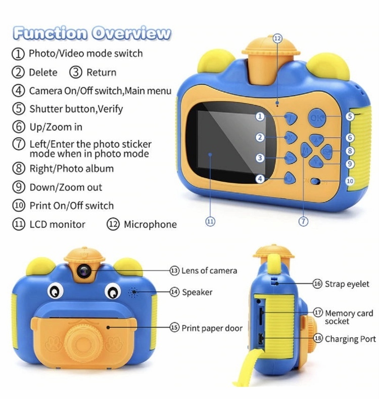 Детский фотоаппарат Print camera с печатью фотографий мгновенно, голубой