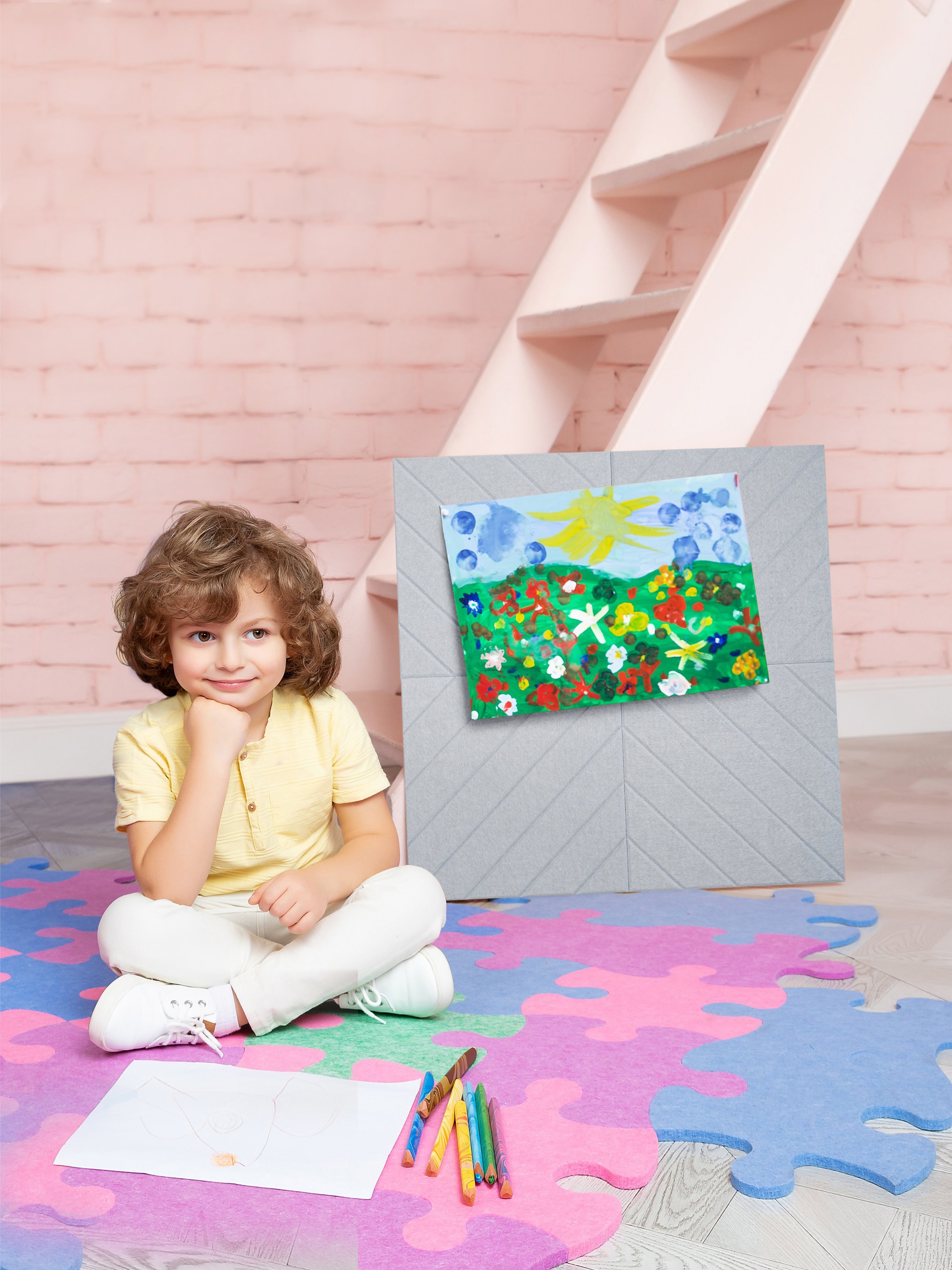 ДОСКА ДЛЯ ЗАПИСОК из Эко-войлока ЛАБИРИНТ 600*600 (4 элемента 30*30) лён