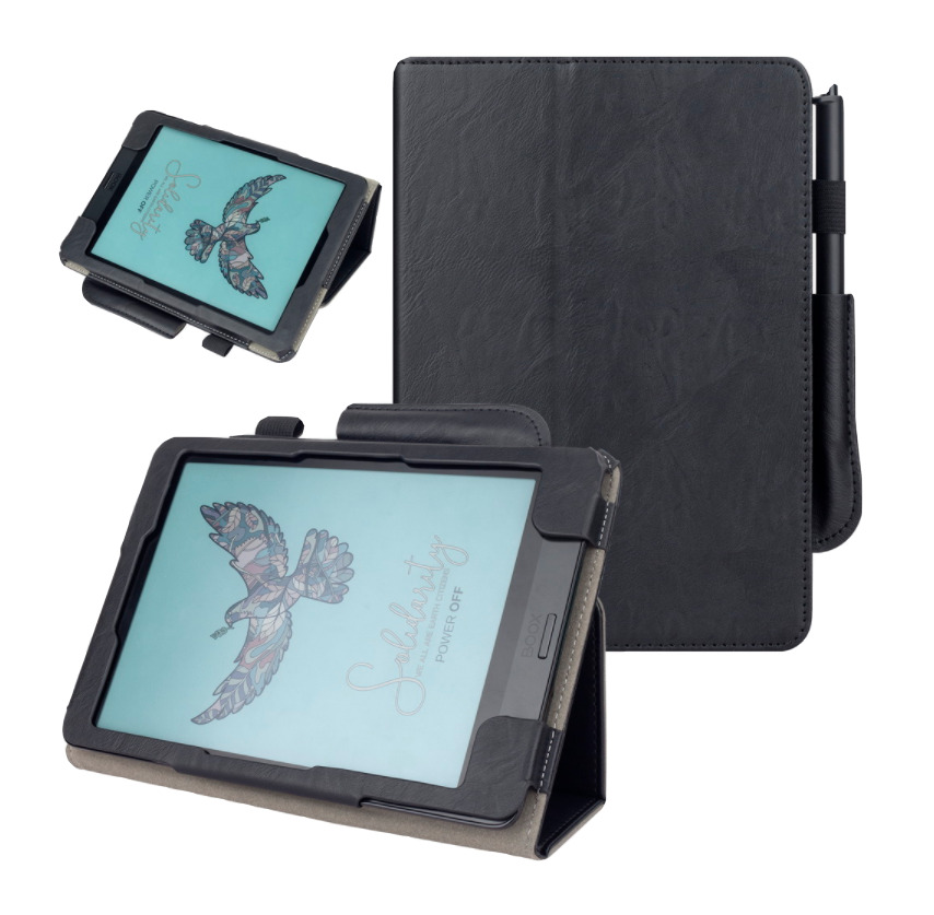 Чехол-обложка MyPads для ONYX BOOX Nova Pro 7.8 с функцией включения-выключения и возможностью быстрого снятия черный кожаный