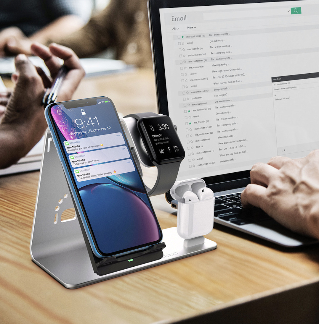 Беспроводное быстрое зарядное устройство 2 в 1 (телефон+часы,5V-9V 10W-15W) MyPads A147678 для Samsung Galaxy Watch Active2 SM-R820/ Samsung Galaxy Watch Active2 SM-R830