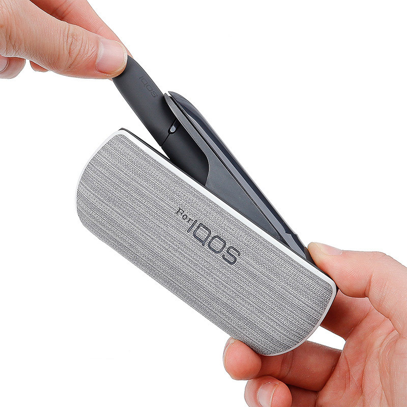 Чехол MyPads на пластиковой основе с вставкой из ткани и логотипом компании для IQOS 3 DUOS/IQOS 3 серый