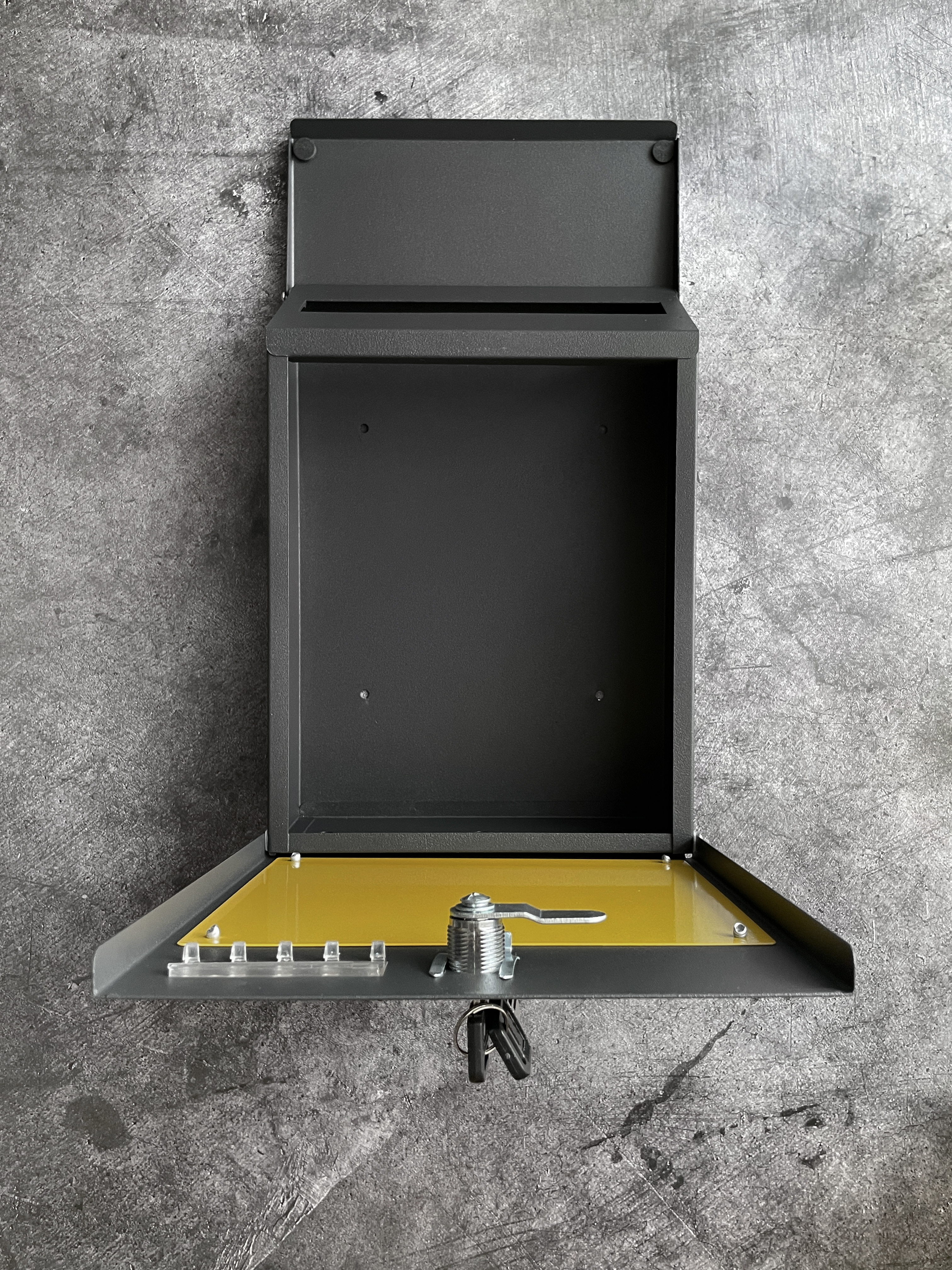 Почтовый ящик MyPost Металлический/Мини/Ящик для почты с замком 370 мм x 370 мм x 100 мм, серый, черно-серый