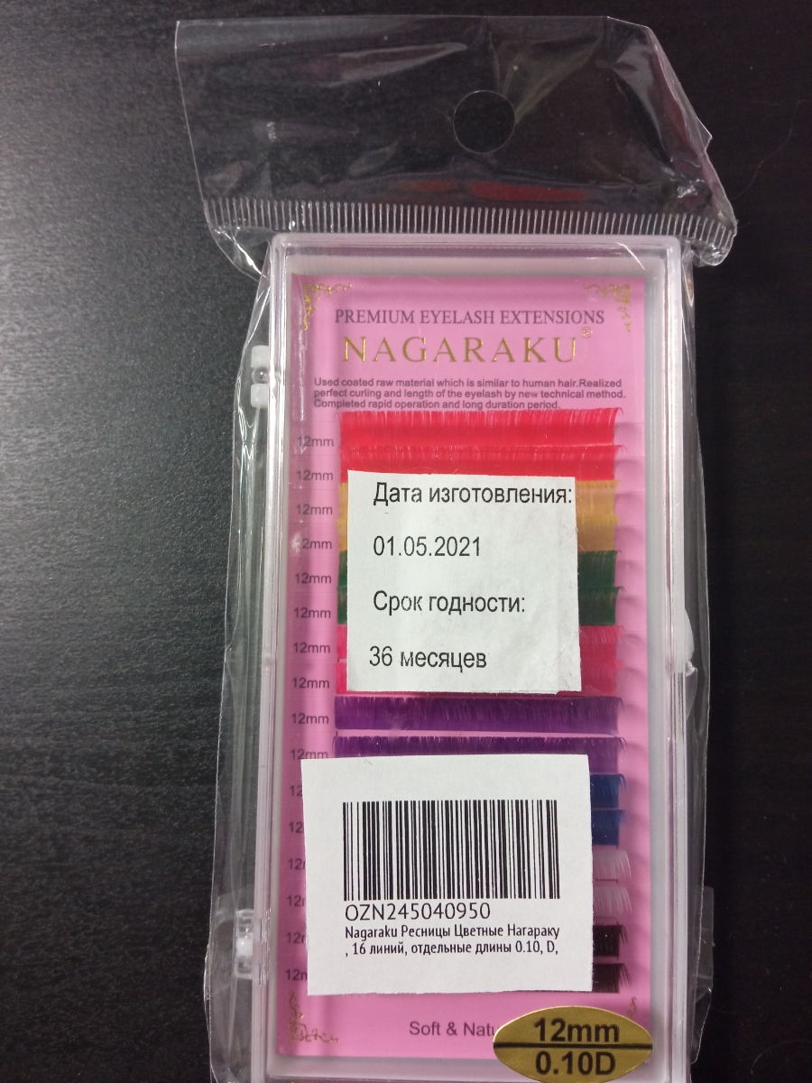 Ресницы Nagaraku цветные. 16 линий. отдельные длины (10мм, C, 0.10мм)