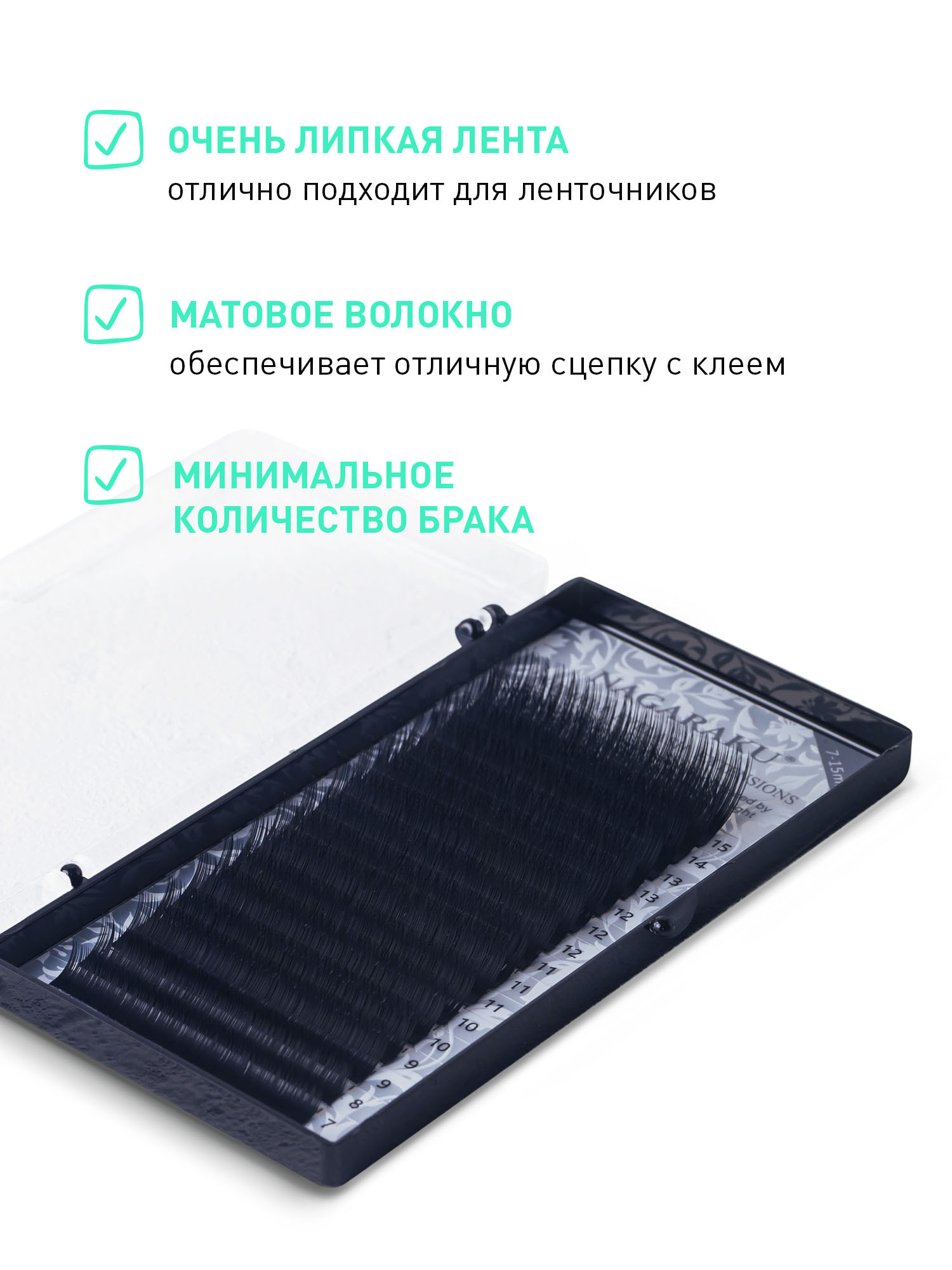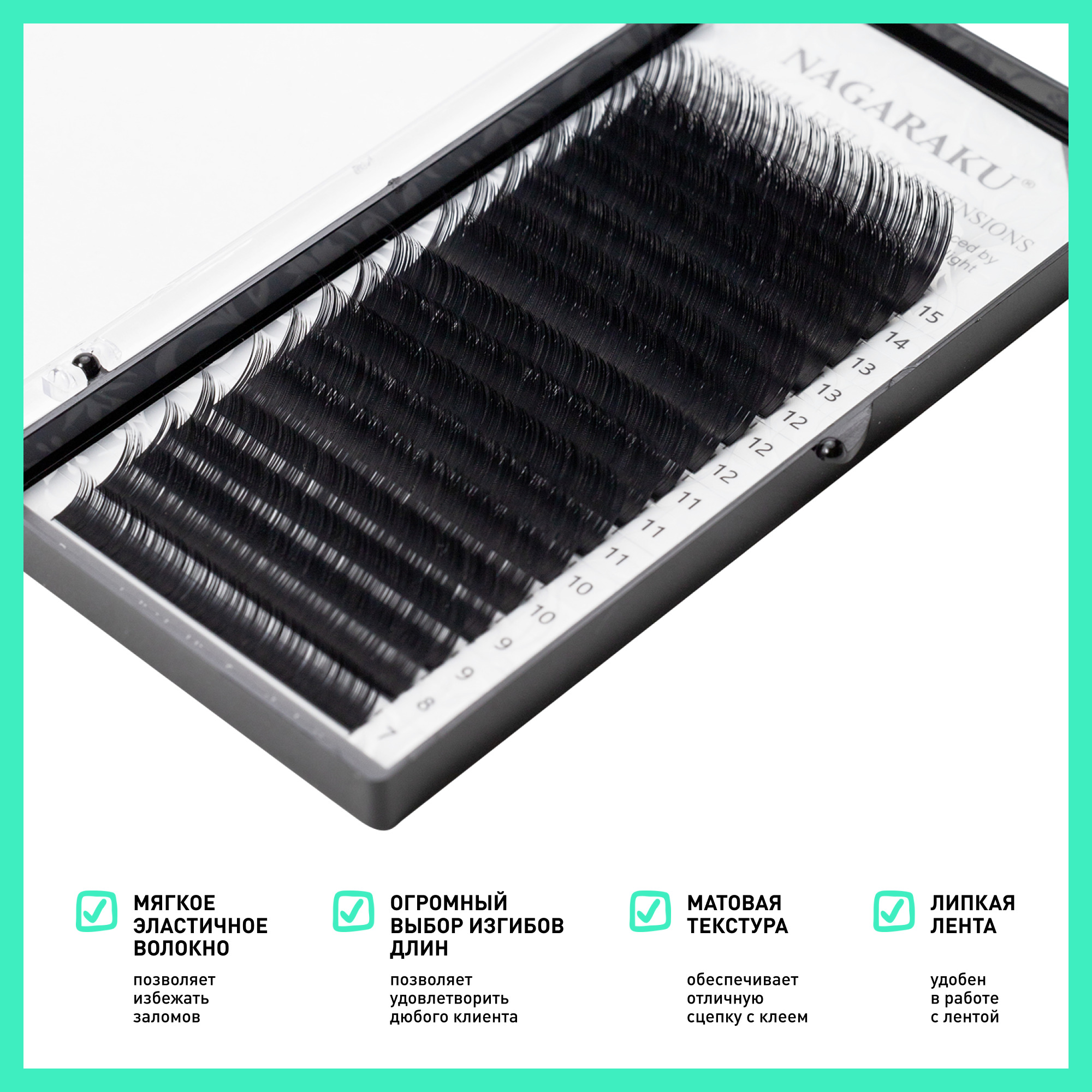 Ресницы Nagaraku черные. 16 линий. микс (7-15мм, C, 0.1мм)