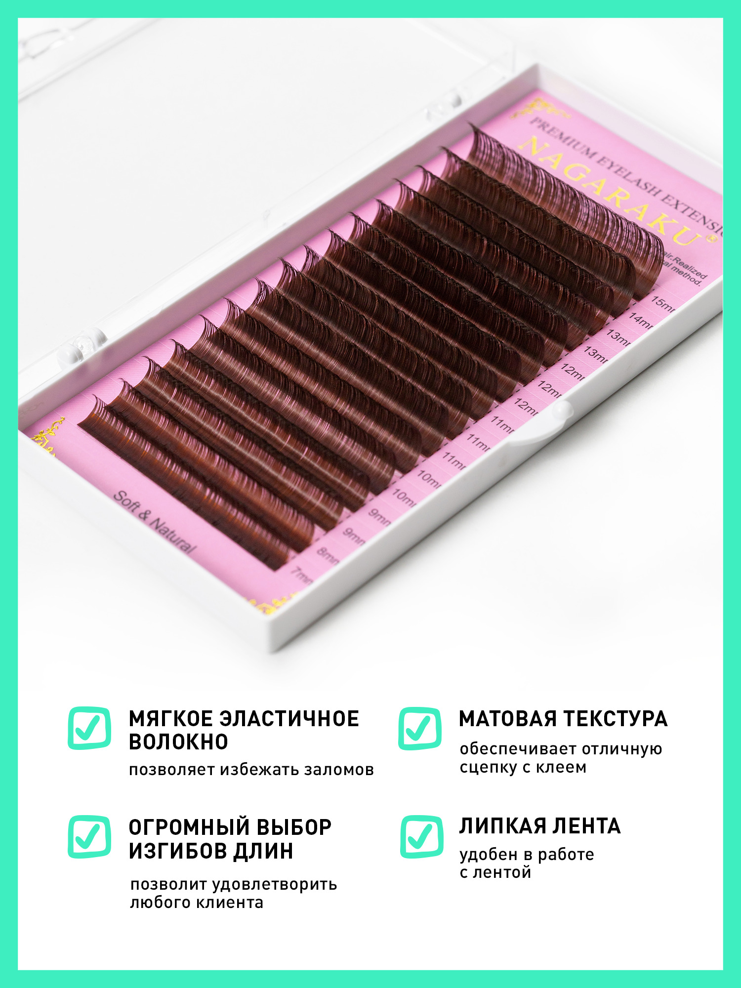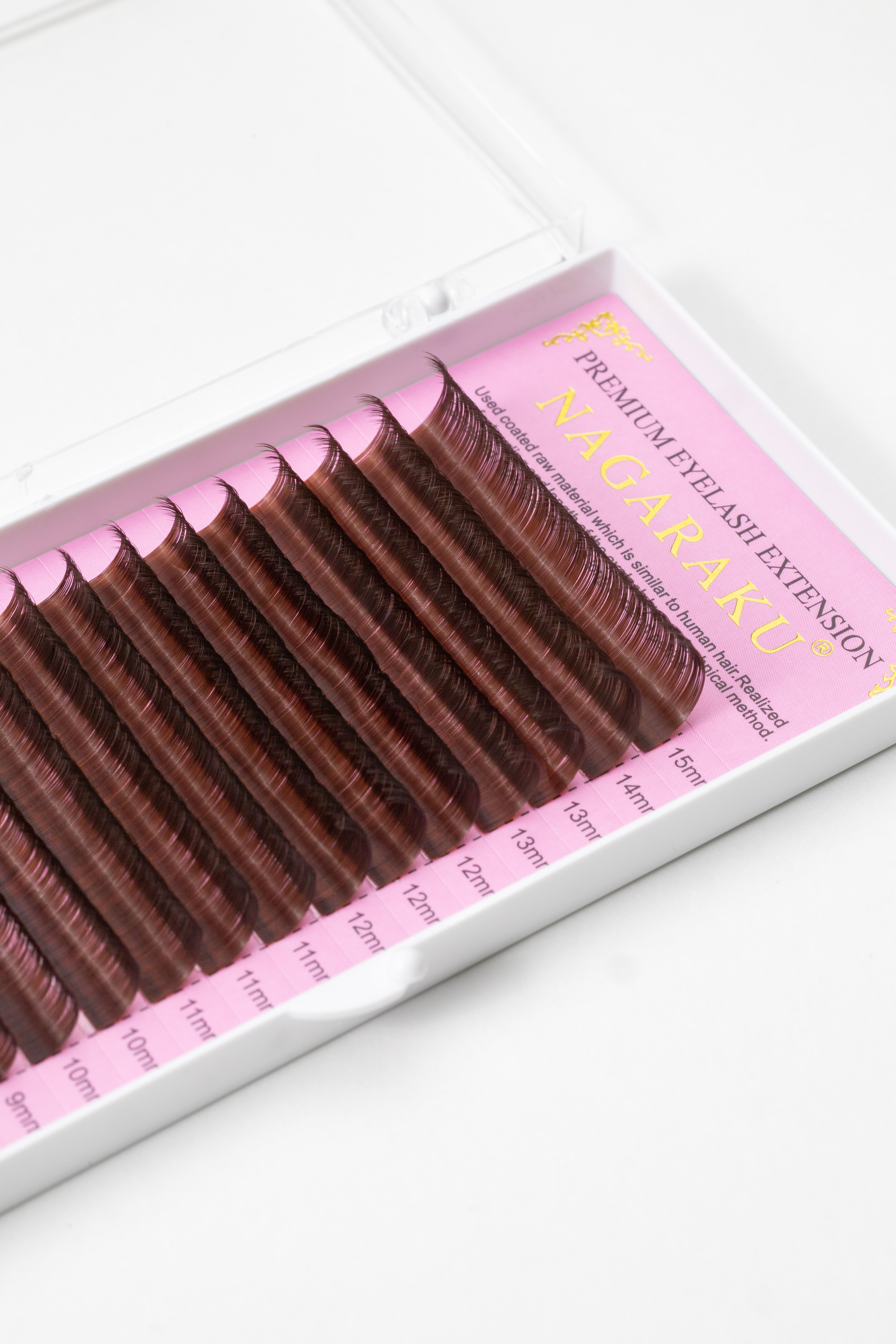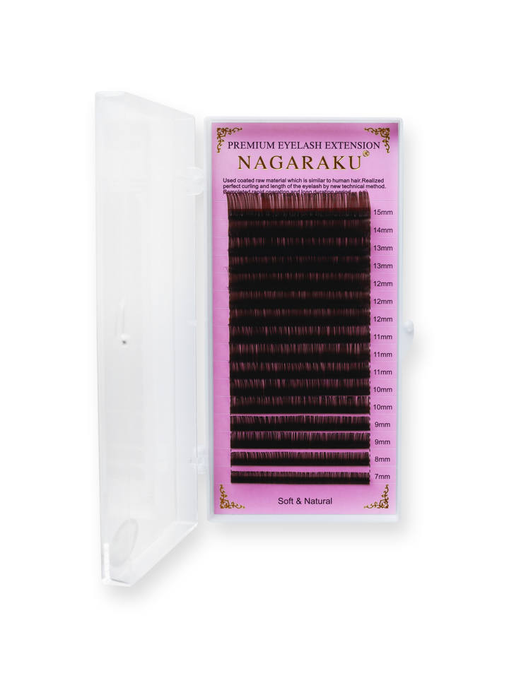 Ресницы Nagaraku коричневые, 16 линий, миксы (7-15мм, D, 0.07мм)