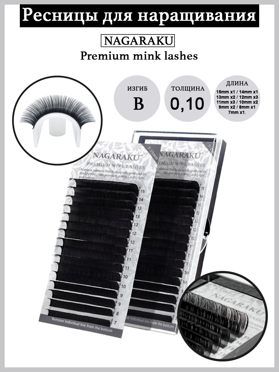 NAGARAKU MIX Premium Mink Lashes Ресницы для наращивания 0,10-B / (7-15мм)