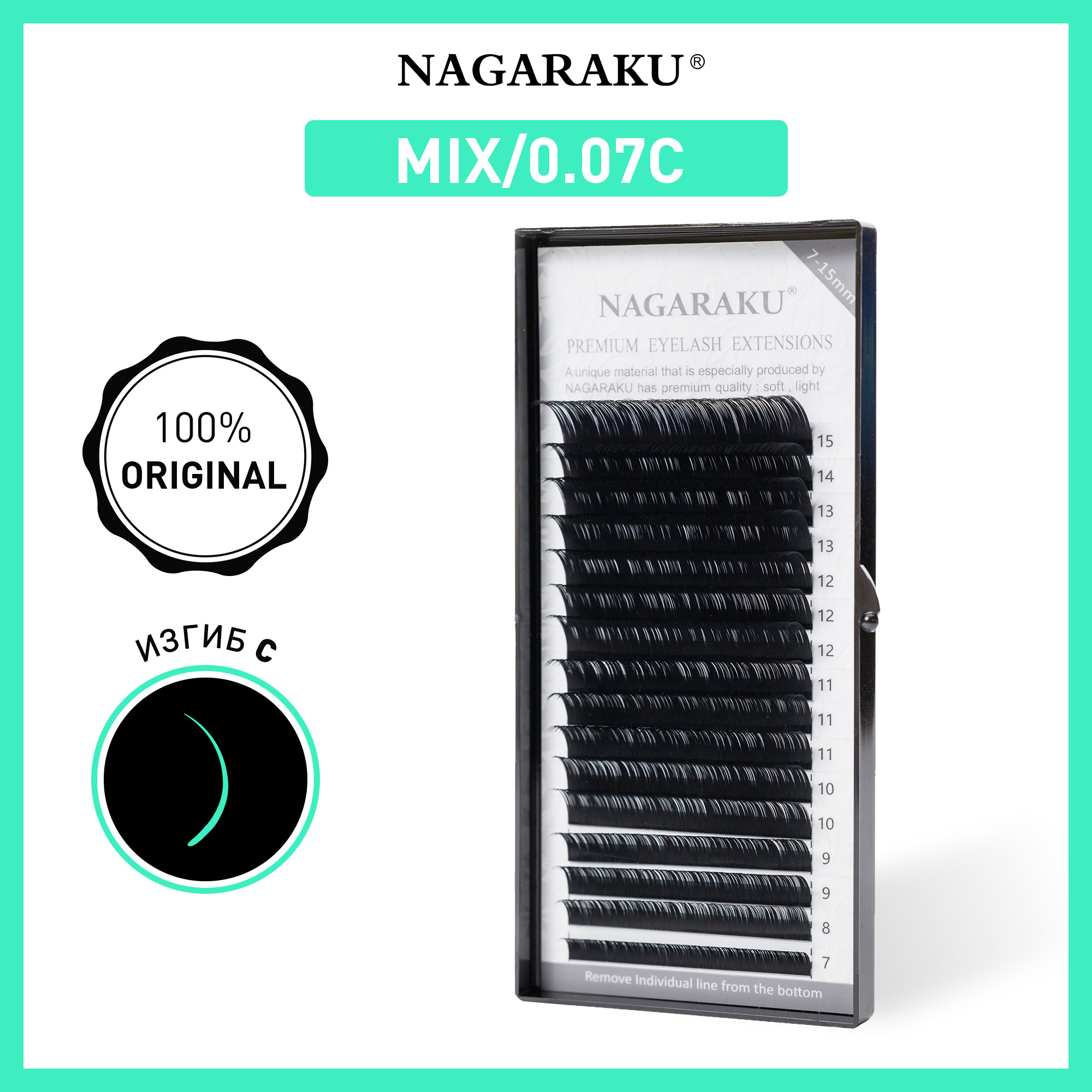 NAGARAKU MIX Premium Mink Lashes Ресницы для наращивания 0,07-D-(7-15 мм)