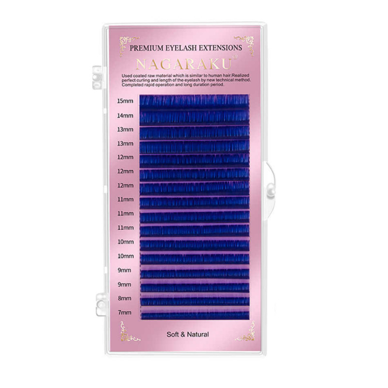 Nagaraku Нагараку Синие ресницы для наращивания МИКС D 0.12 7-15мм