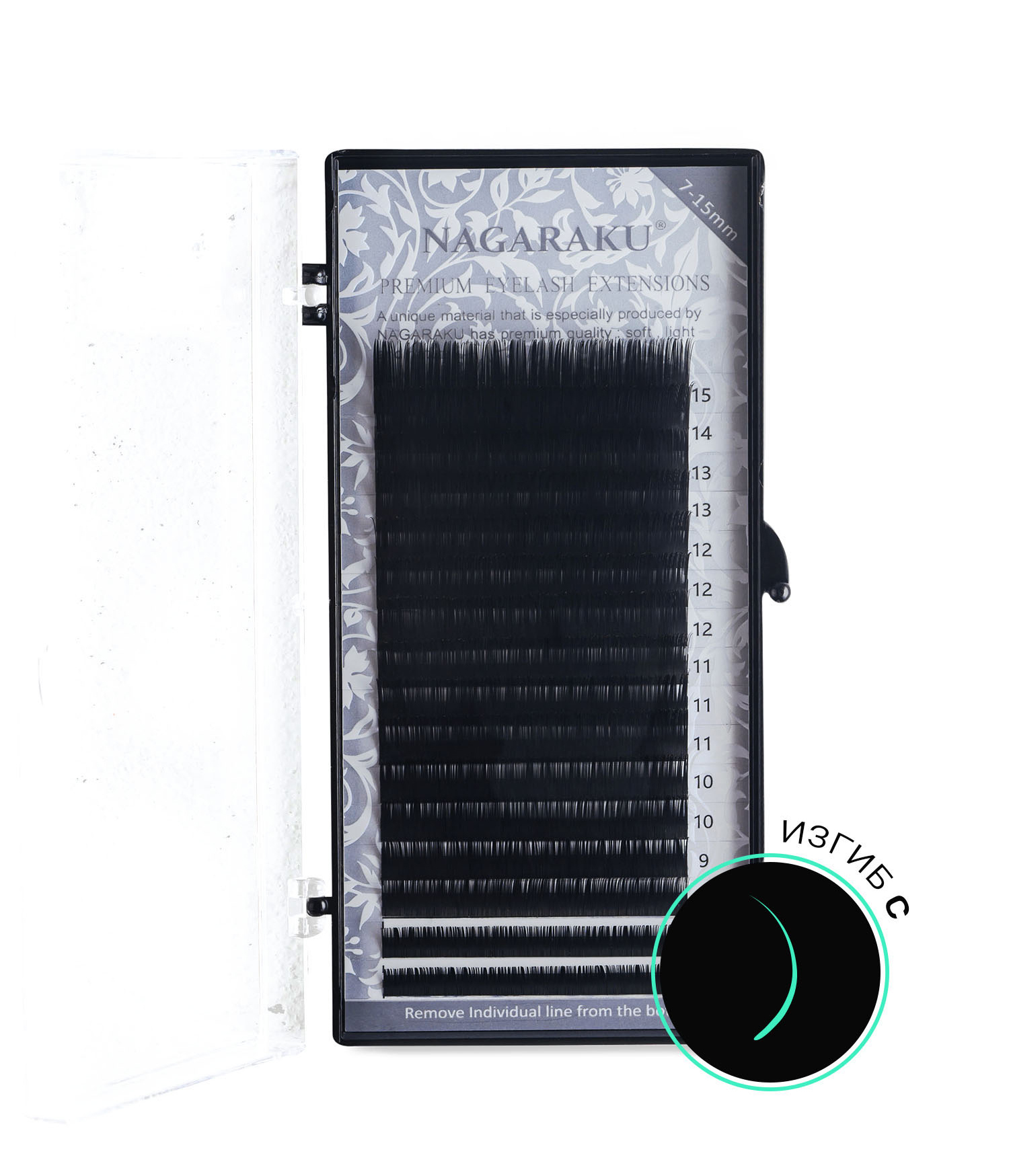 Ресницы Nagaraku черные Нагараку, 16 линий, микс (7-15мм, D, 0,12мм)