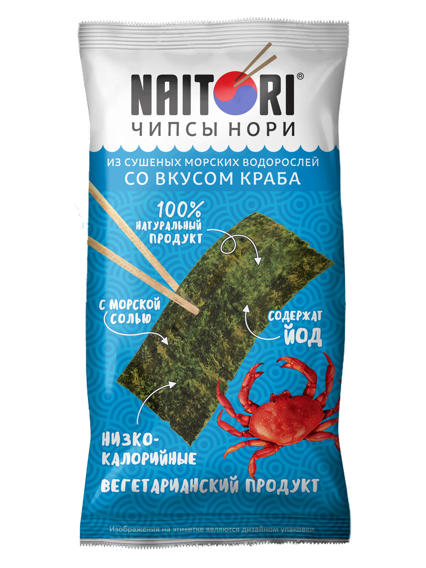 Чипсы нори из обжаренных морских водорослей со вкусом краба