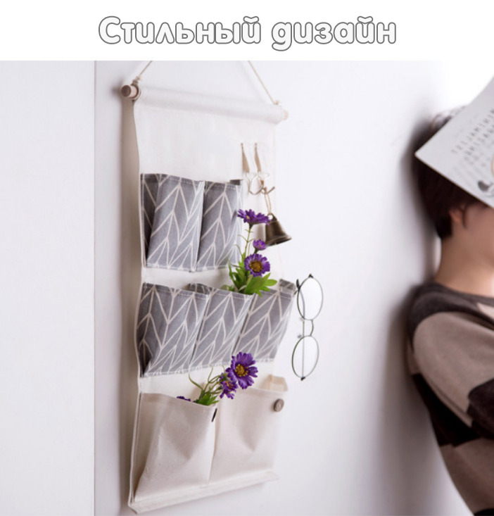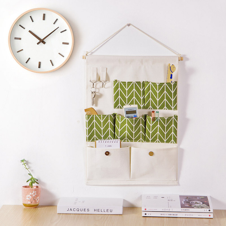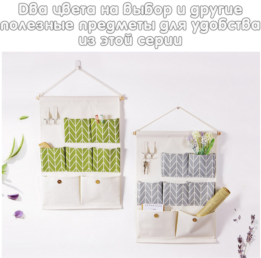 Органайзер настенный подвесной для хранения вещей 7 кармашков и 2 крючка (зеленый)