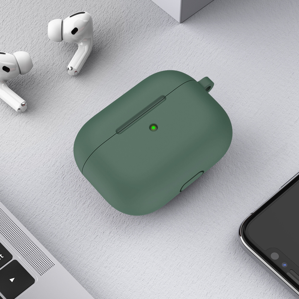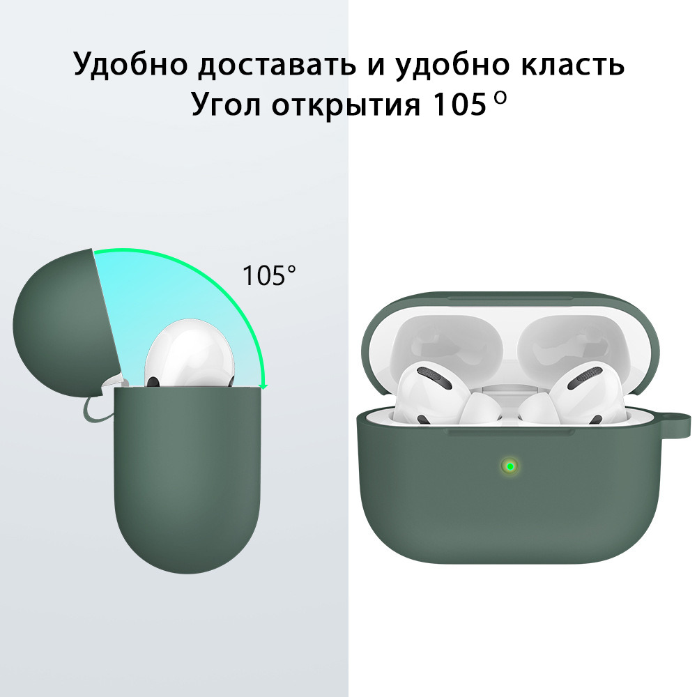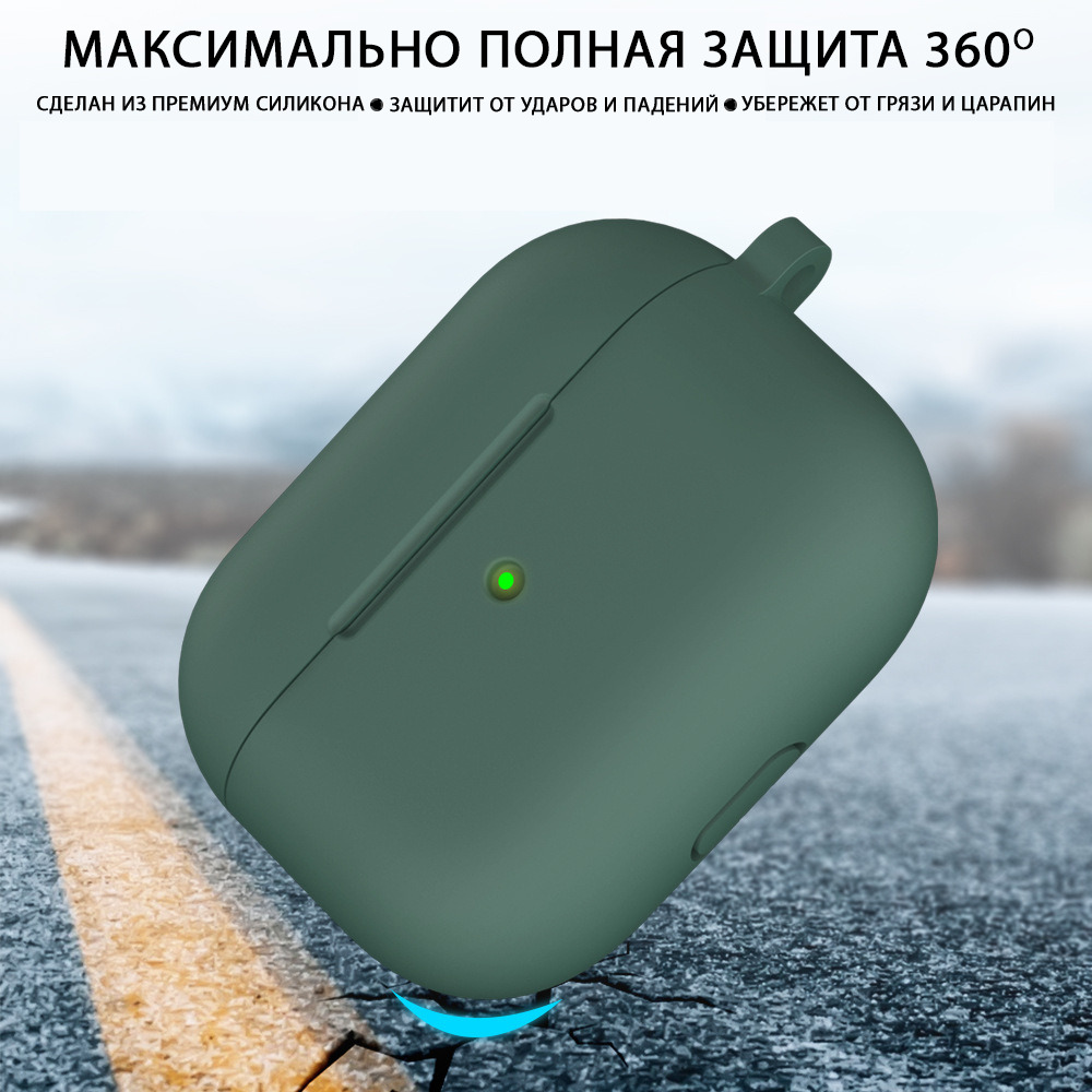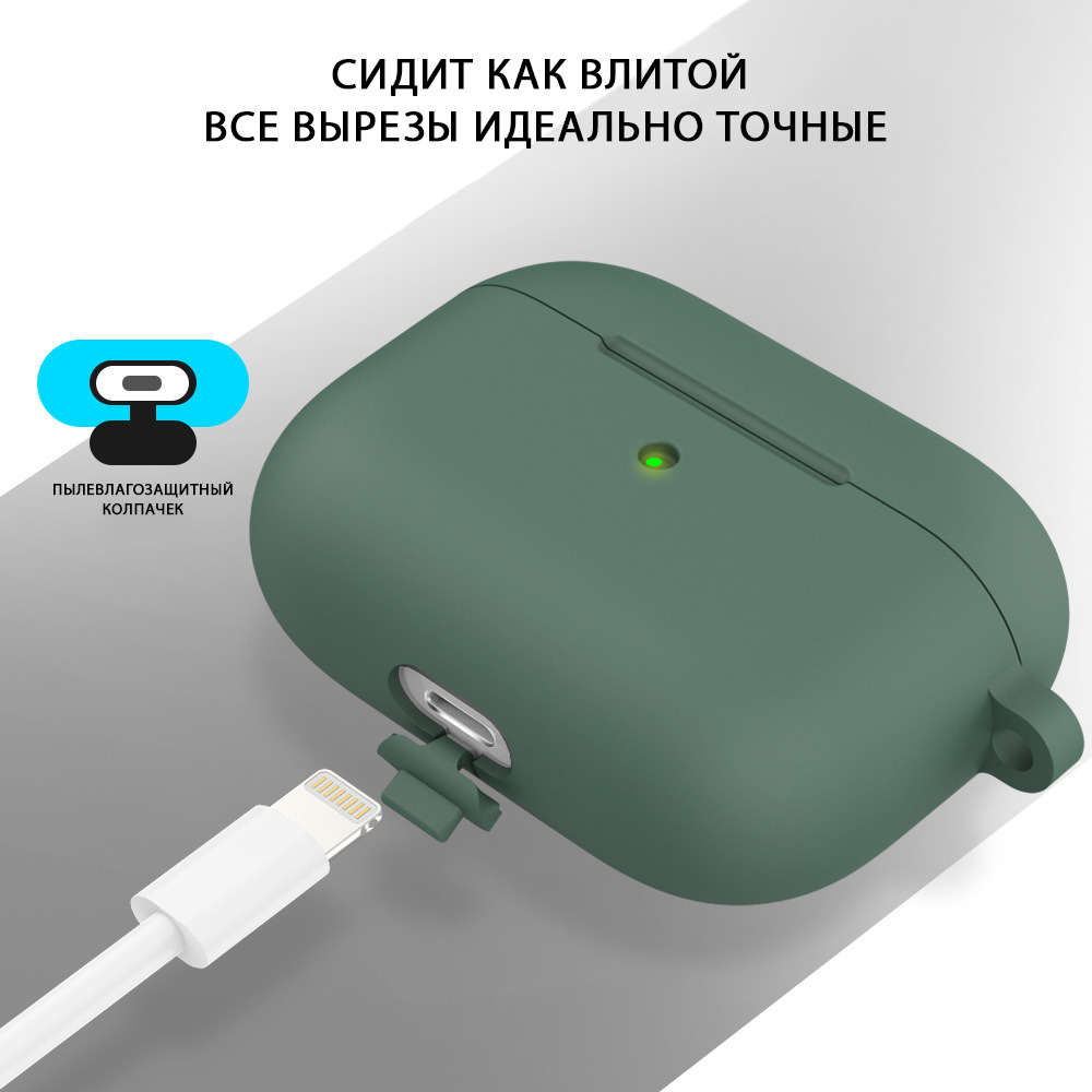 Силиконовый чехол NAM для наушников Apple AirPods Pro / Эпл Аирподс про / с карабином/ темно-зеленый