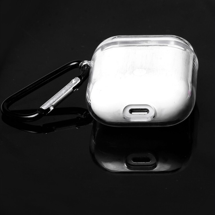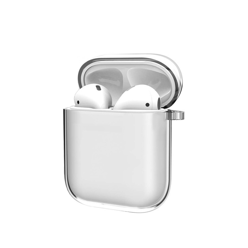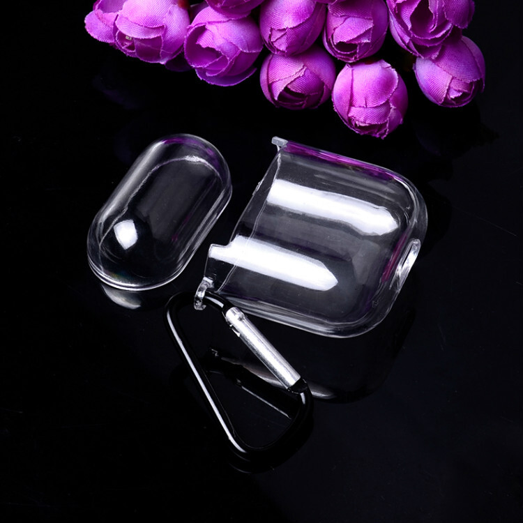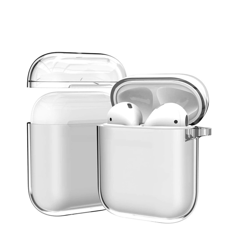 Тонкий прозрачный силиконовый чехол NAM для наушников Apple AirPods 1 и Apple AirPods 2 / Эпл Аирподс 1 и Эпл Аирподс 2, с карабином