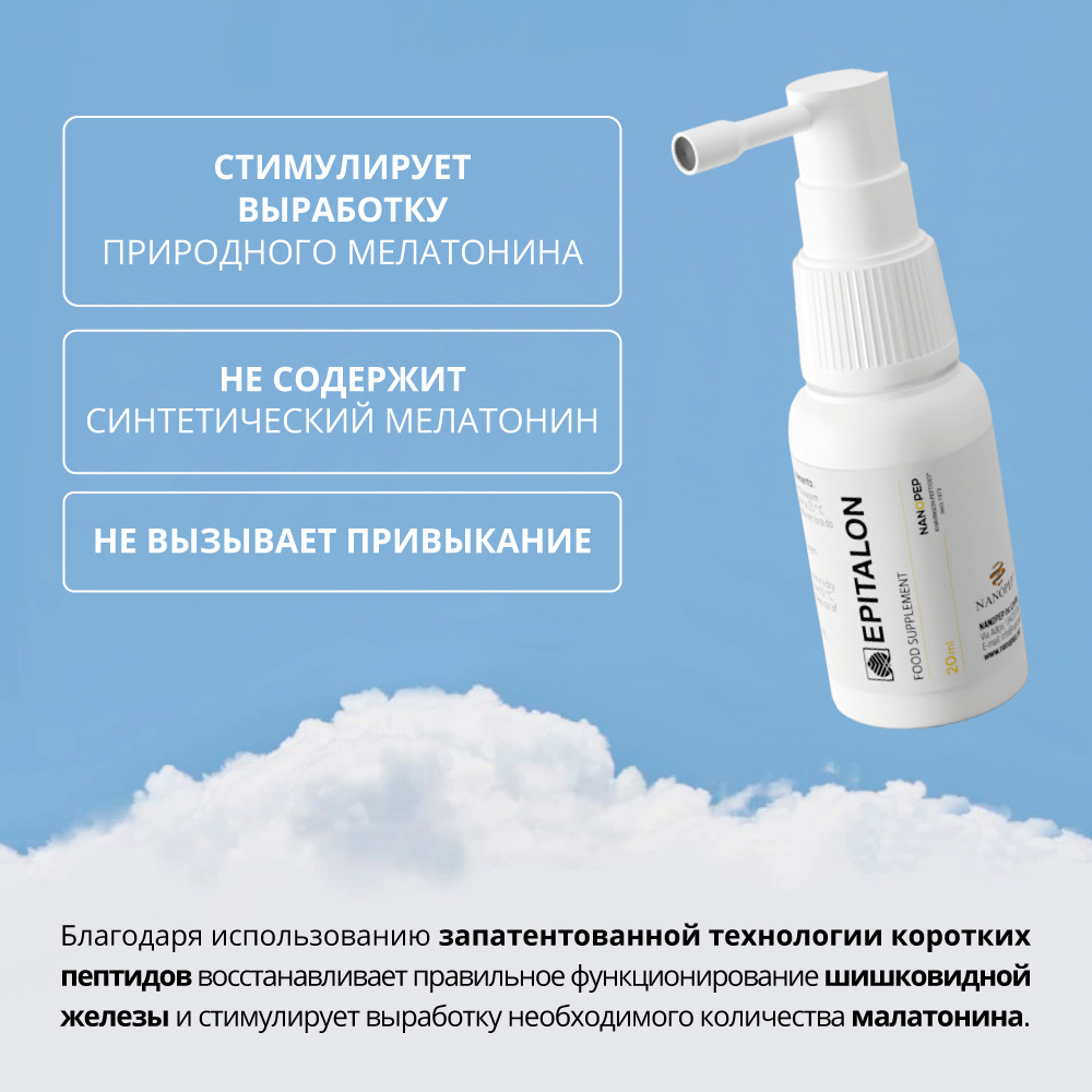 Нанопеп, Эпиталон спрей, EPITALON для улучшения качества сна и омоложения организма, пептиды Хавинсона - Португалия, 20 мл