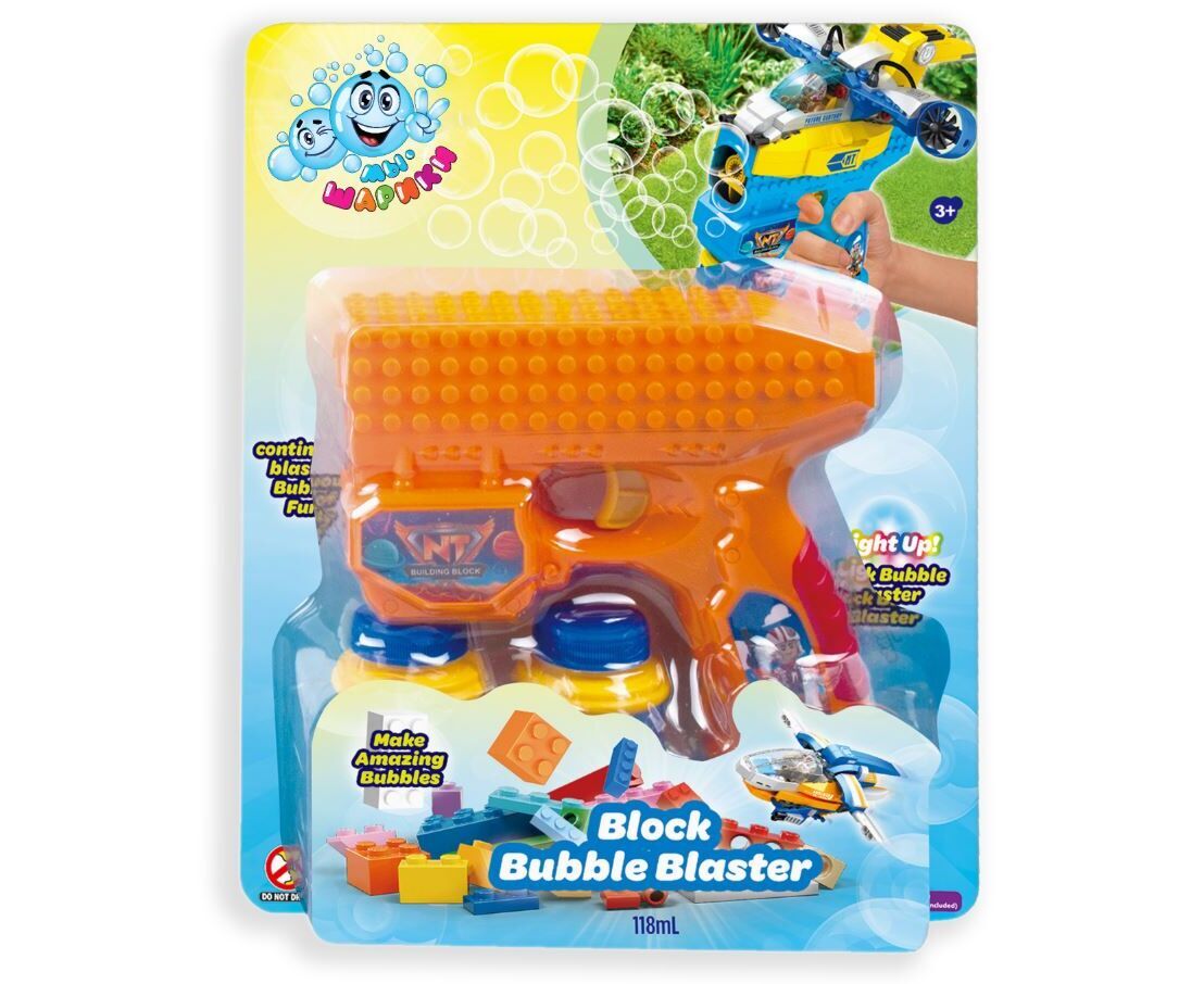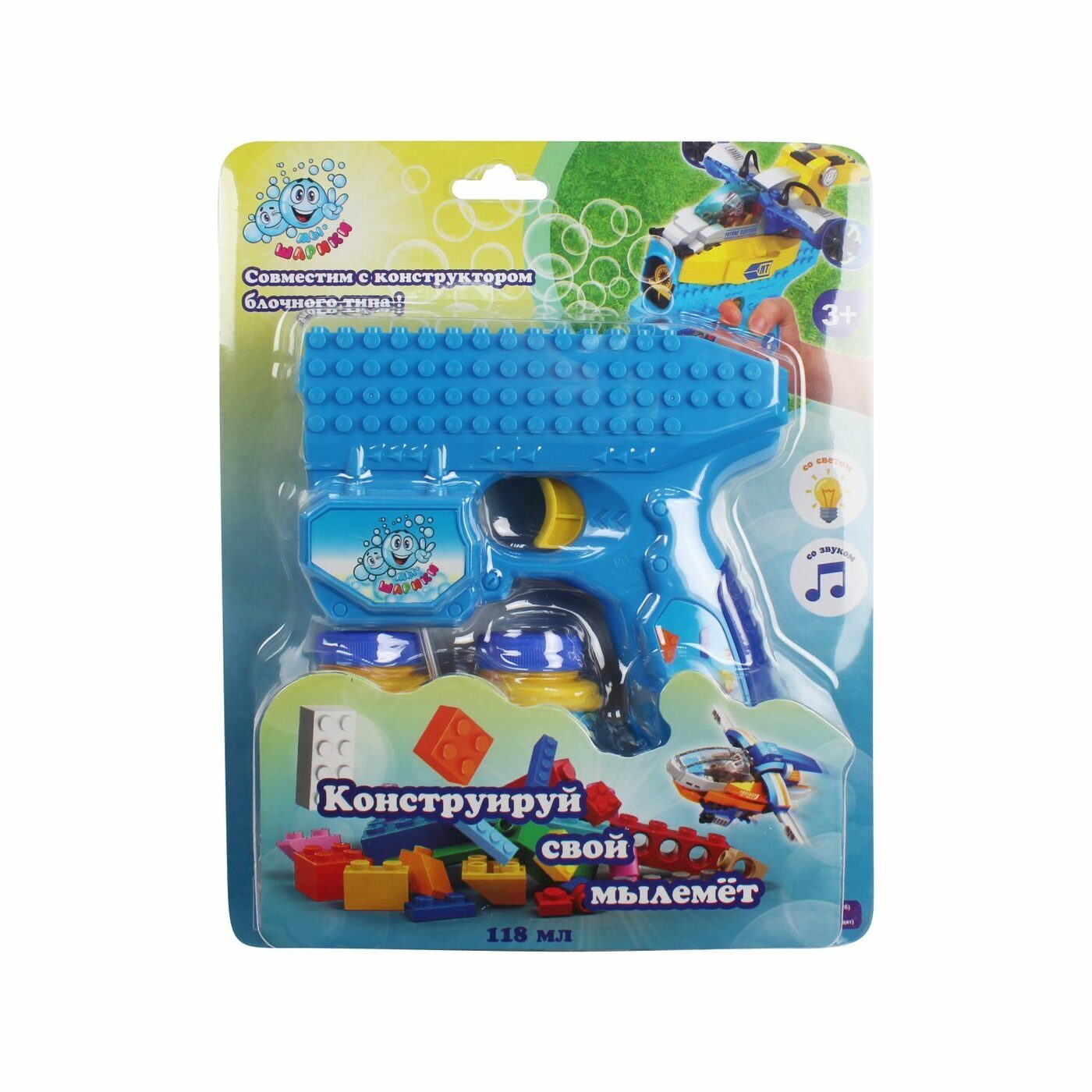 Набор для пускания мыльных пузырей в виде пистолета конструктора со световыми и звуковыми эффектами.