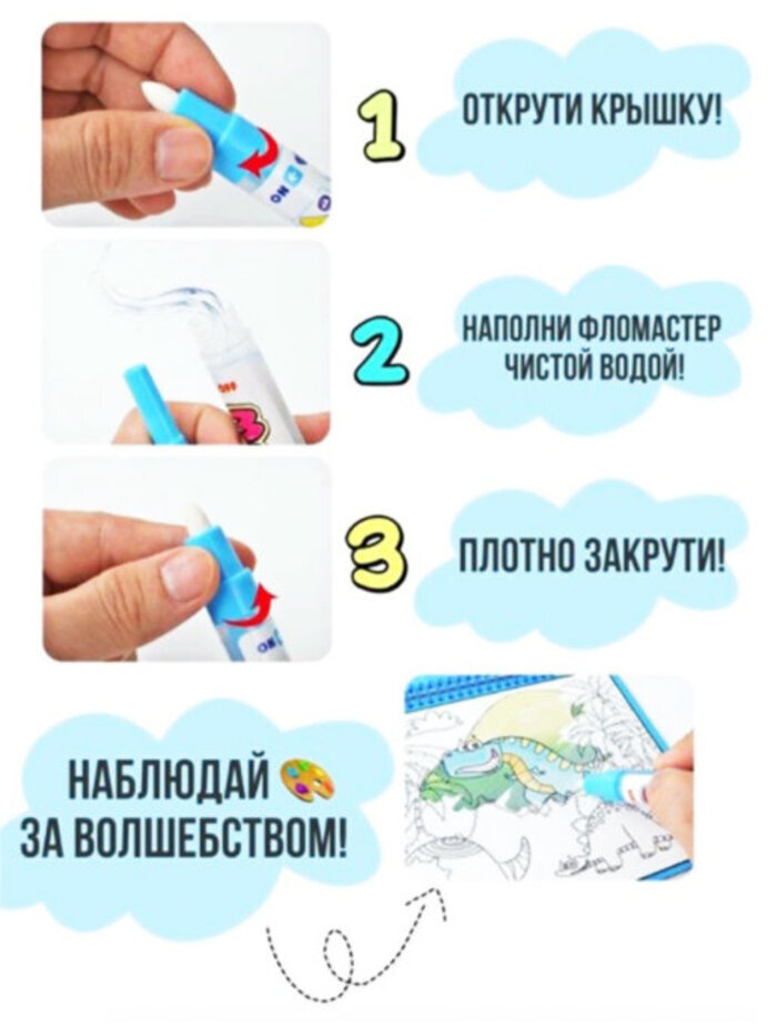 Многоразовая водная раскраска с маркером "Динозавры" Аквараскраска