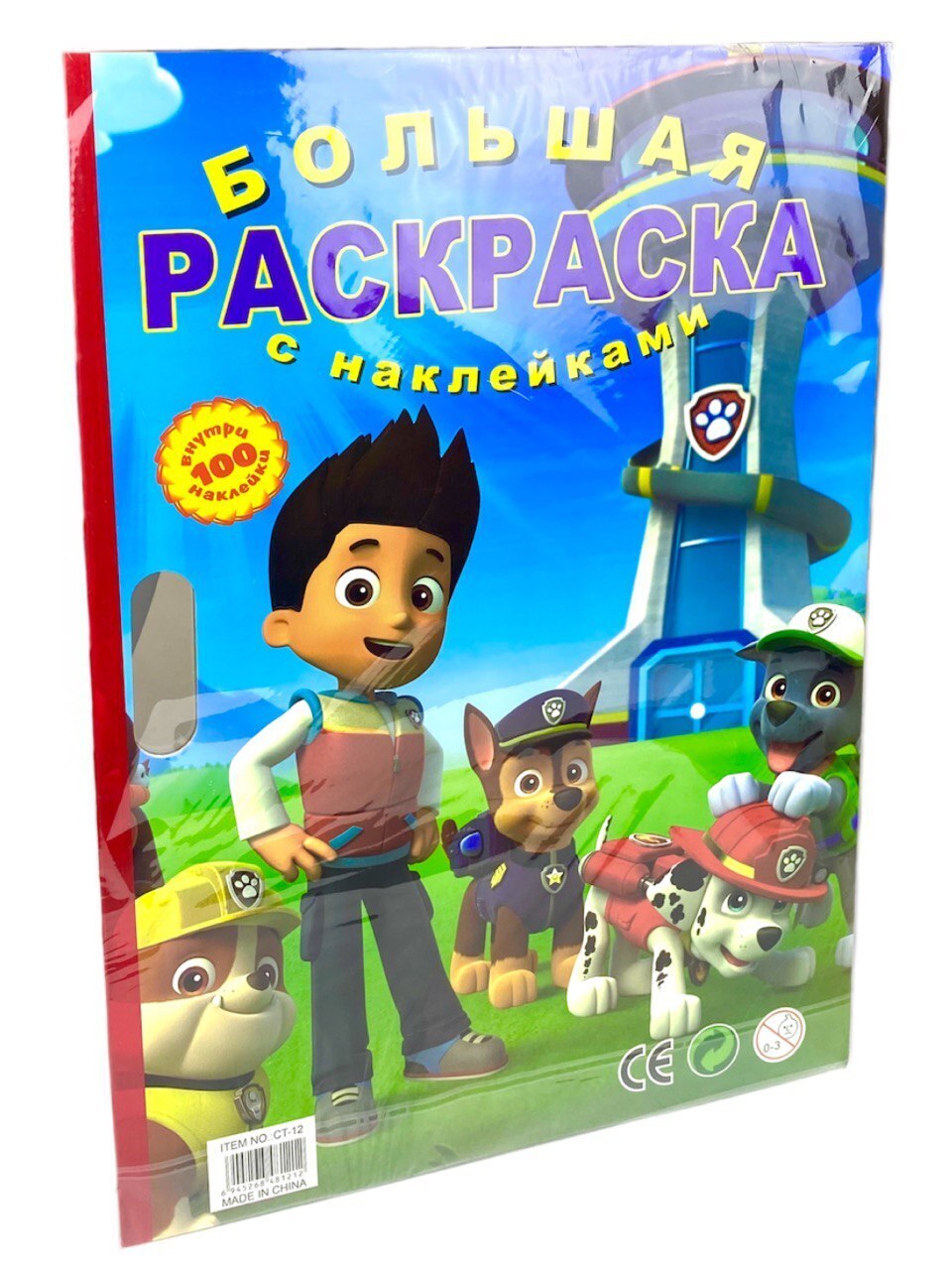 Большая раскраска "Щенок дружок" 53х34 см, 100 штук наклеек внутри